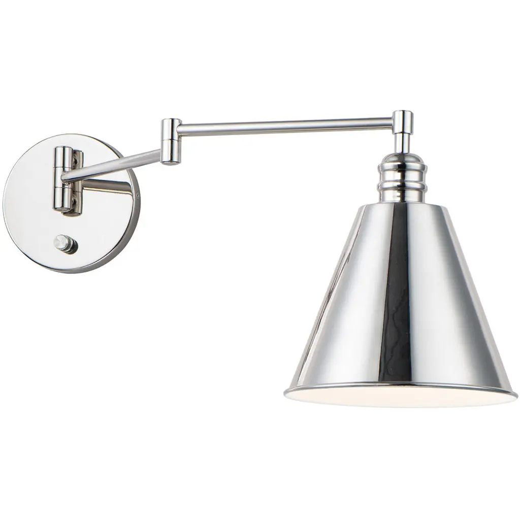 Direct the light exactly where you want it using the articulated arms and metal shades of the Library series. At the backplate, the arm pivots left/right and up/down to direct the light. Additional articulated arms angle the shade or extend/contract the distance of the light source from the wall. Available in Polished Nickel, Black and Heritage Brass finishes, the Library collection evokes industrial era classicism perfect for use as a task light or accent light. Complimentary table and floor lamps complete the collection. Mounting Direction: Down Back Plate Height: 5.13 Back Plate Width: 5.13 Dimmable: Yes Shade Dimensions: 6.50