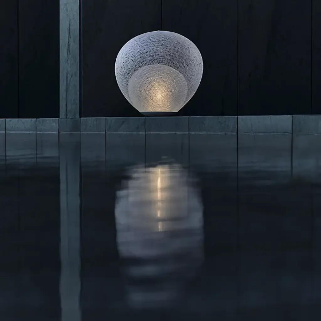 With a design vaguely reminiscent of a caterpillar's cocoon, the Mayuhana Yugami Floor Lamp by Yamagiwa brings a level of warmness to contemporary interior living areas. The floor lamp is constructed from spindles of Fiberglass and Aluminum, forming a shade with a silk-like facade. Fixture uses incandescent bulbs (not included) to play with the spindles to cast a soft, ambient light to the immediate area, making it best suited for application in living rooms, bedrooms, and office areas.