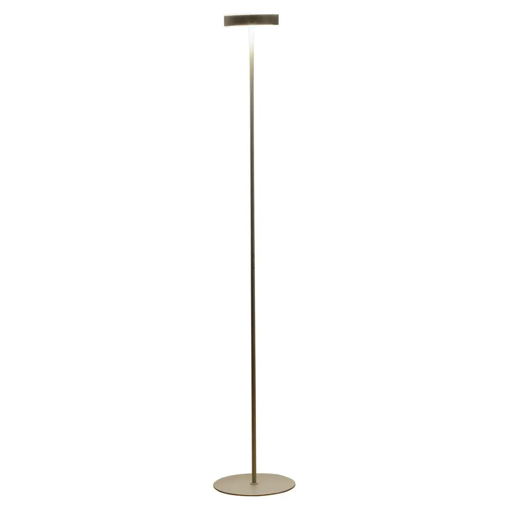 The Artemide Megaron Floor Lamp adds a dramatic, architectural element to interior decor. This modern design classic is a two-part column of extruded aluminum, with slits on either side casting a vibrant wash of ambient light. Designed by Gianfranco Frattini in 1979, the Megaron Floor Lamp won the prestigious Compasso d'Oro award in 1981.