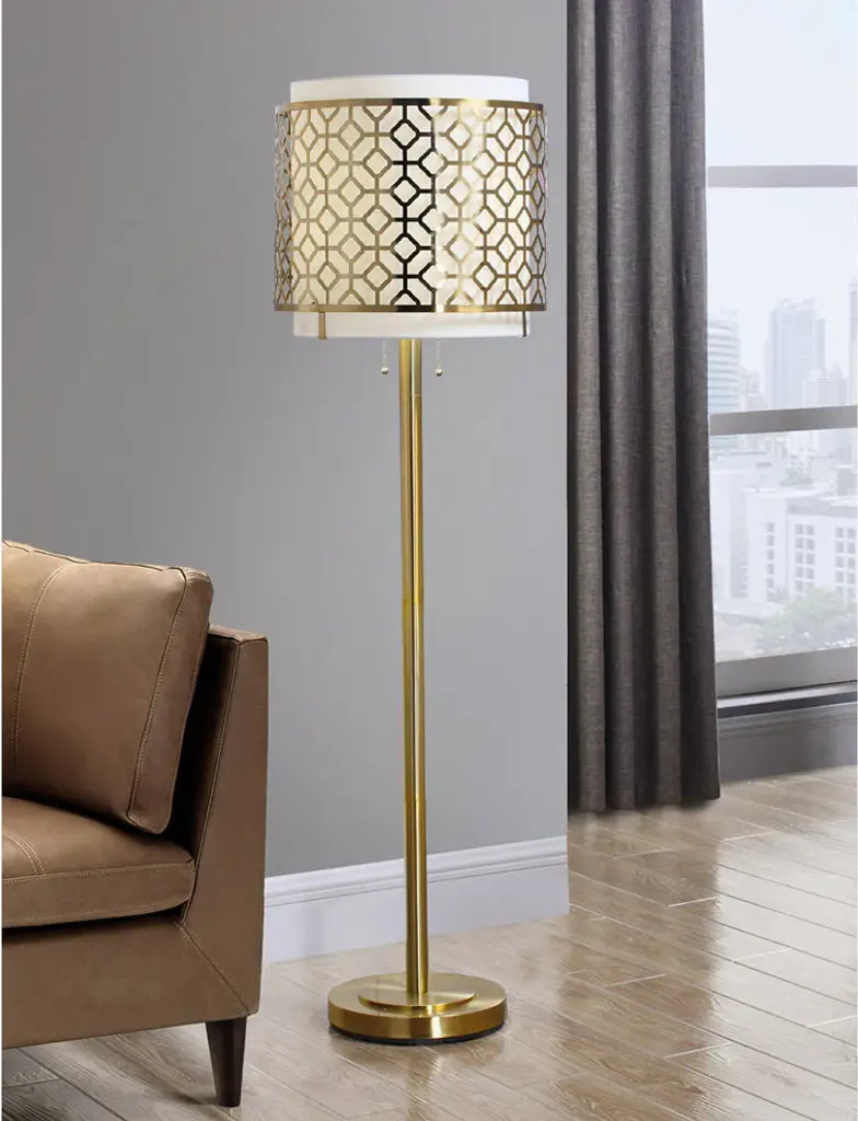 The MELROSE metal floor lamp with design pattern metal light shade brings perfect looks to where you want a simple, modern and luxury of light display. Number of Bulbs: 2Bulb Type: A19Bulbs Included? NoWattage: 60