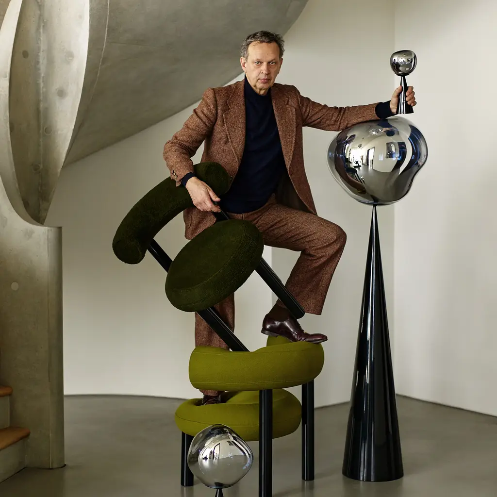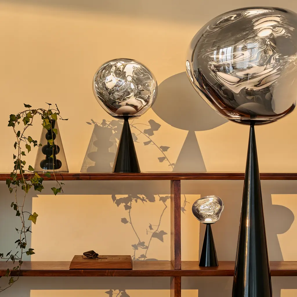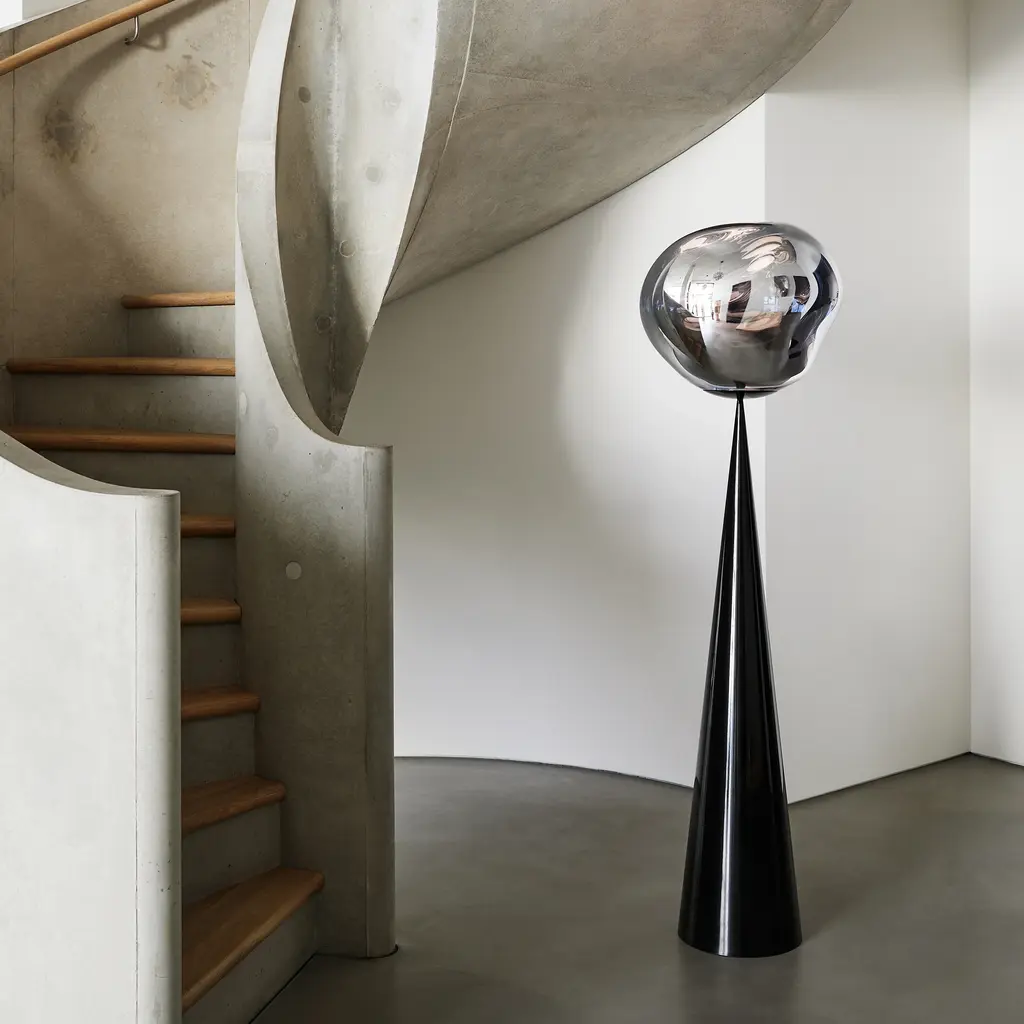 Brit Tom Dixon literally broke the mold with Melt, his vacuum-formed lighting design. His metallic "blob" shines as a floor lamp with a wide cone base. The distorted sphere shade comes in a choice of gold, copper, silver, or smoke finish to cast its softened glow with the designer's requisite offbeat style.
