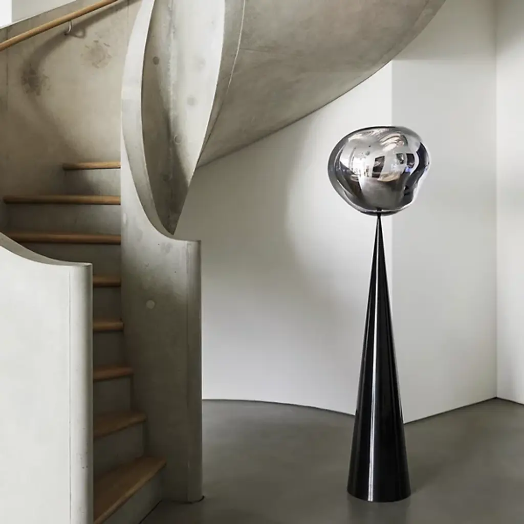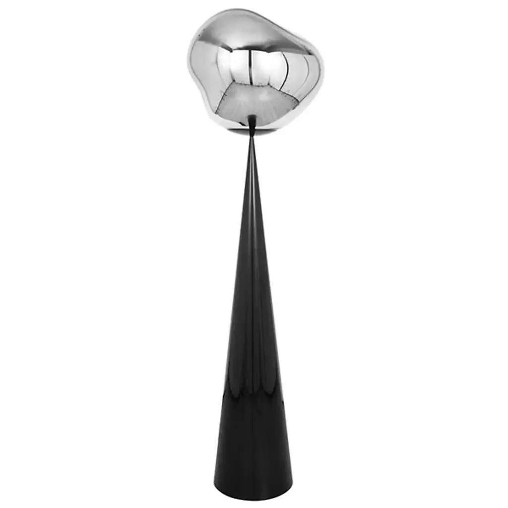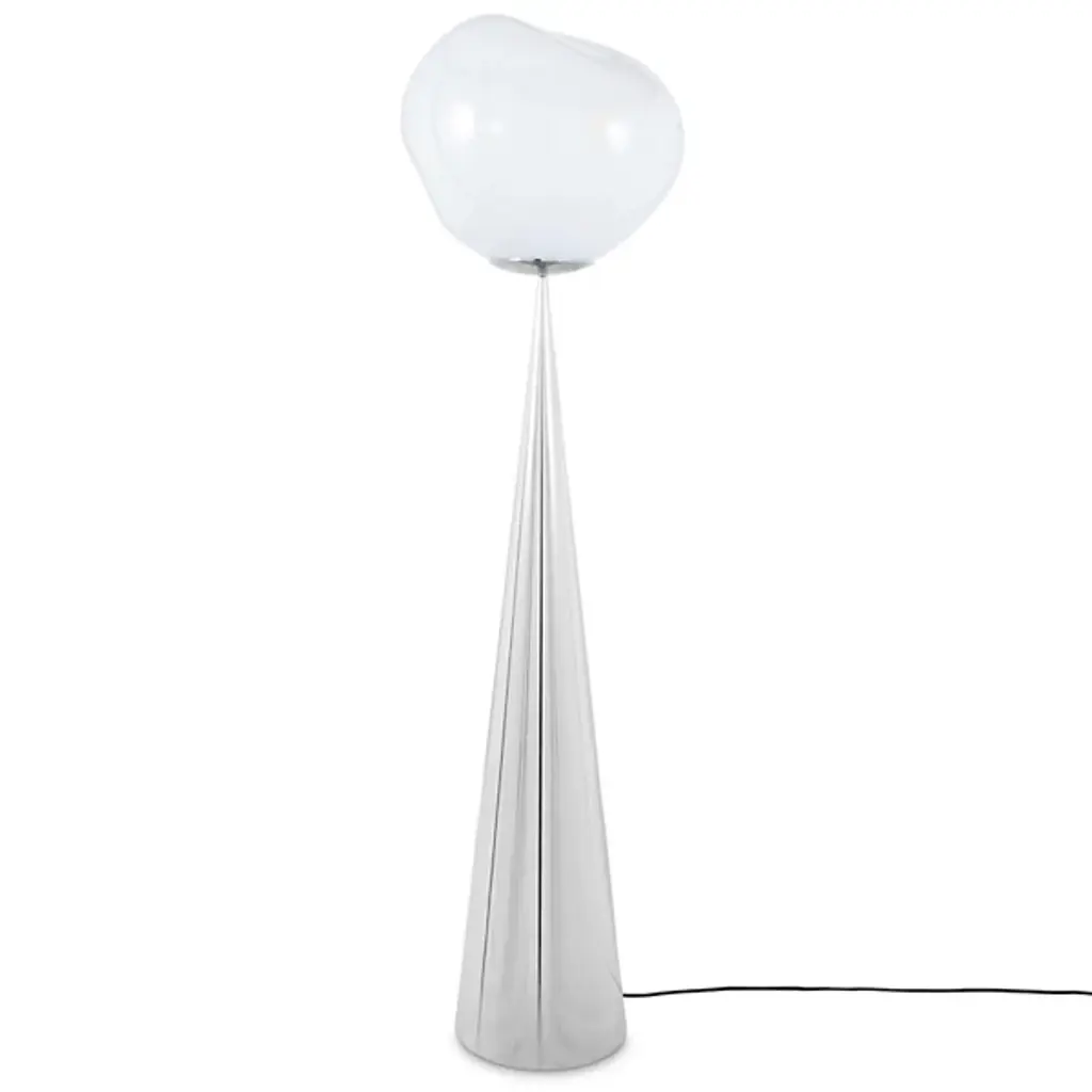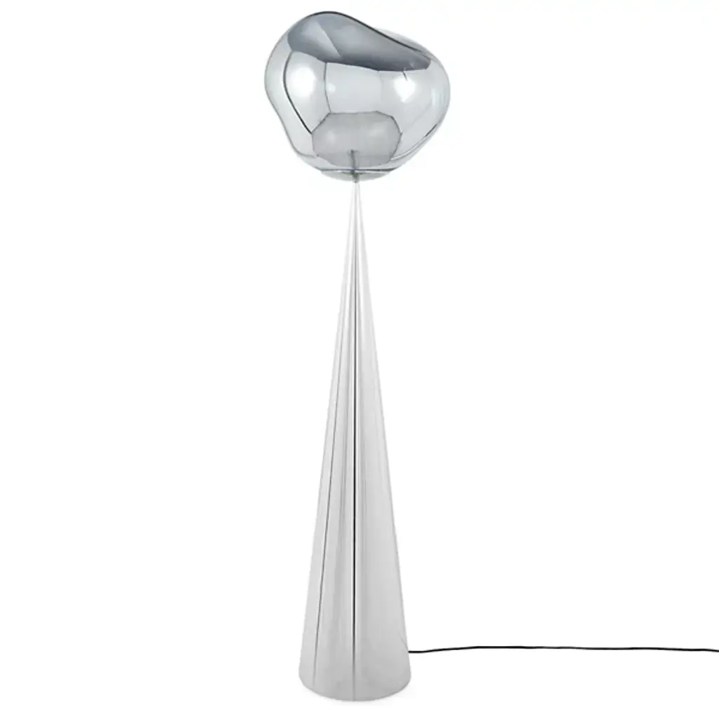 The Melt Cone Fat LED Floor Lamp from Tom Dixon is a visual delight. For this project, designer Tom Dixon captures the look of a glacier slowly melting. This floor lamp is crafted using blow molding and vacuum metallization techniques to achieve this evocative aesthetic. Your floor lamp is composed of steel and polycarbonate. The lamp’s conical nicely tapers to keep this furnishment stable. The integrated LED that lights up your room can be dimmed with the use of a separately sold ELV dimmer.