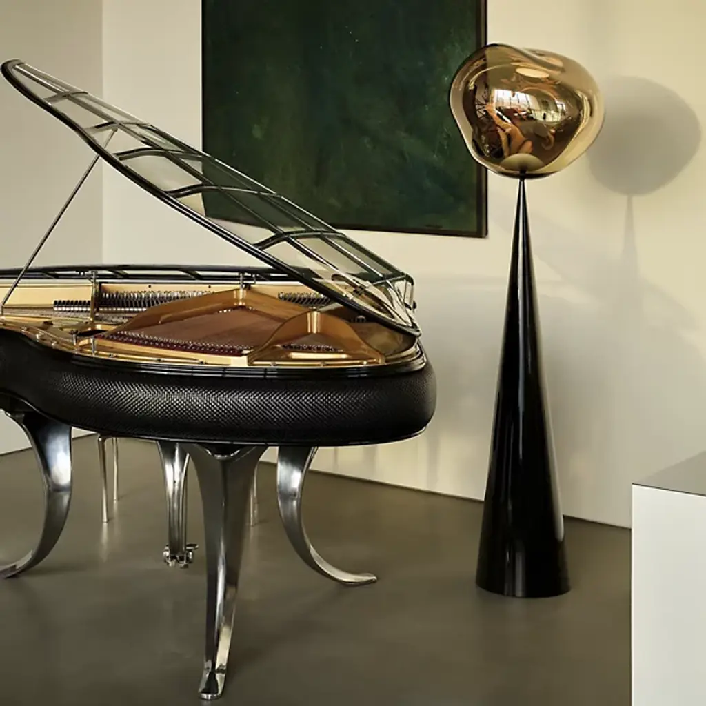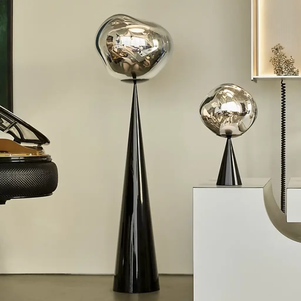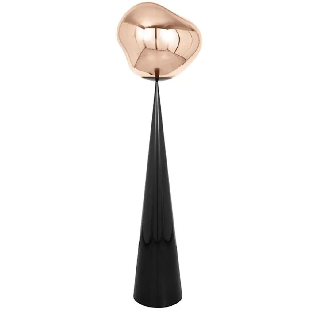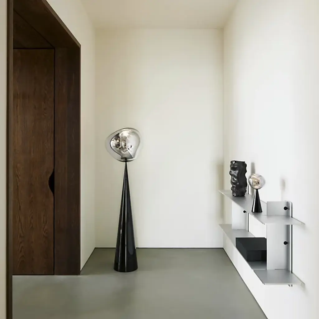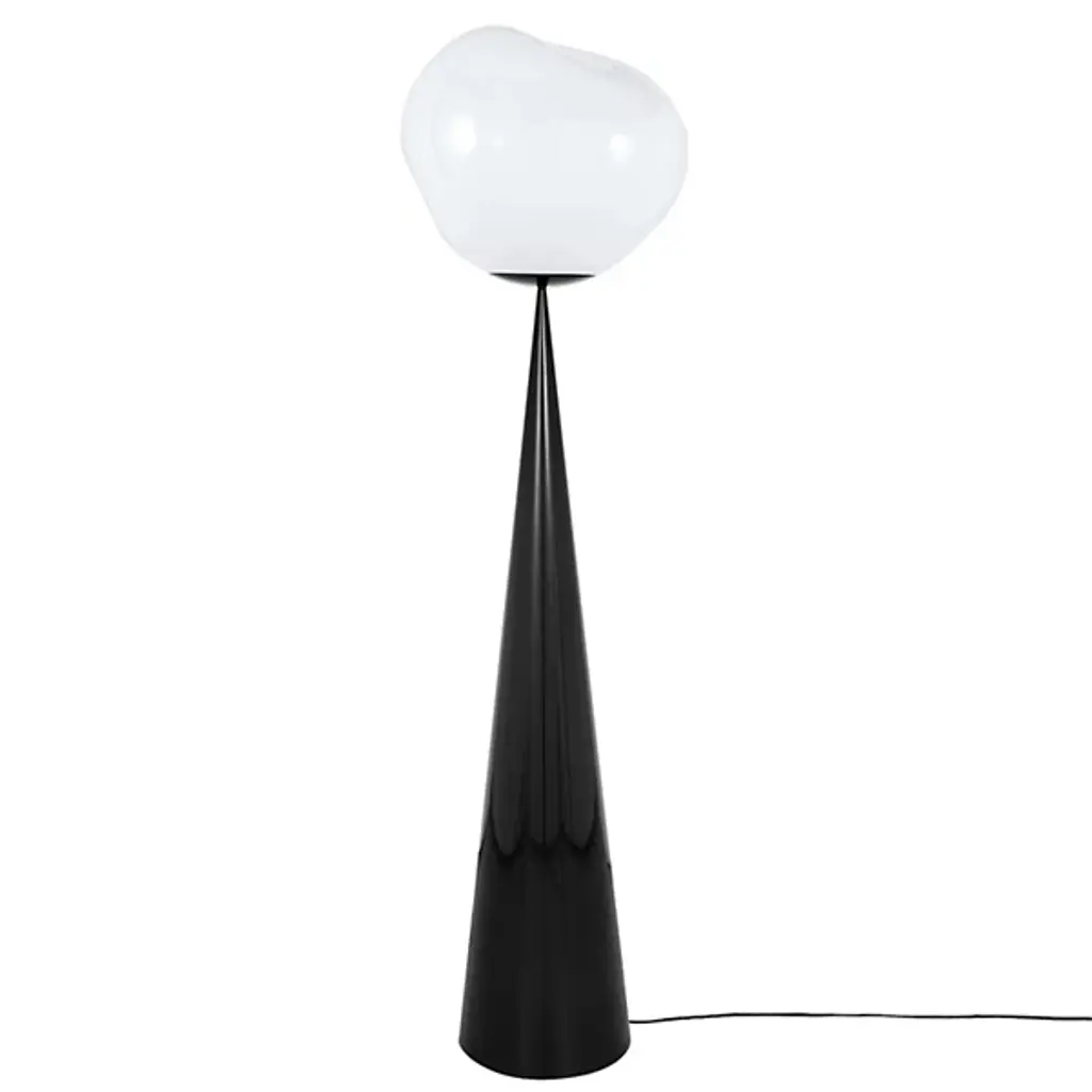 The Melt Cone Fat LED Floor Lamp from Tom Dixon is a visual delight. For this project, designer Tom Dixon captures the look of a glacier slowly melting. This floor lamp is crafted using blow molding and vacuum metallization techniques to achieve this evocative aesthetic. Your floor lamp is composed of steel and polycarbonate. The lamp’s conical nicely tapers to keep this furnishment stable. The integrated LED that lights up your room can be dimmed with the use of a separately sold ELV dimmer.