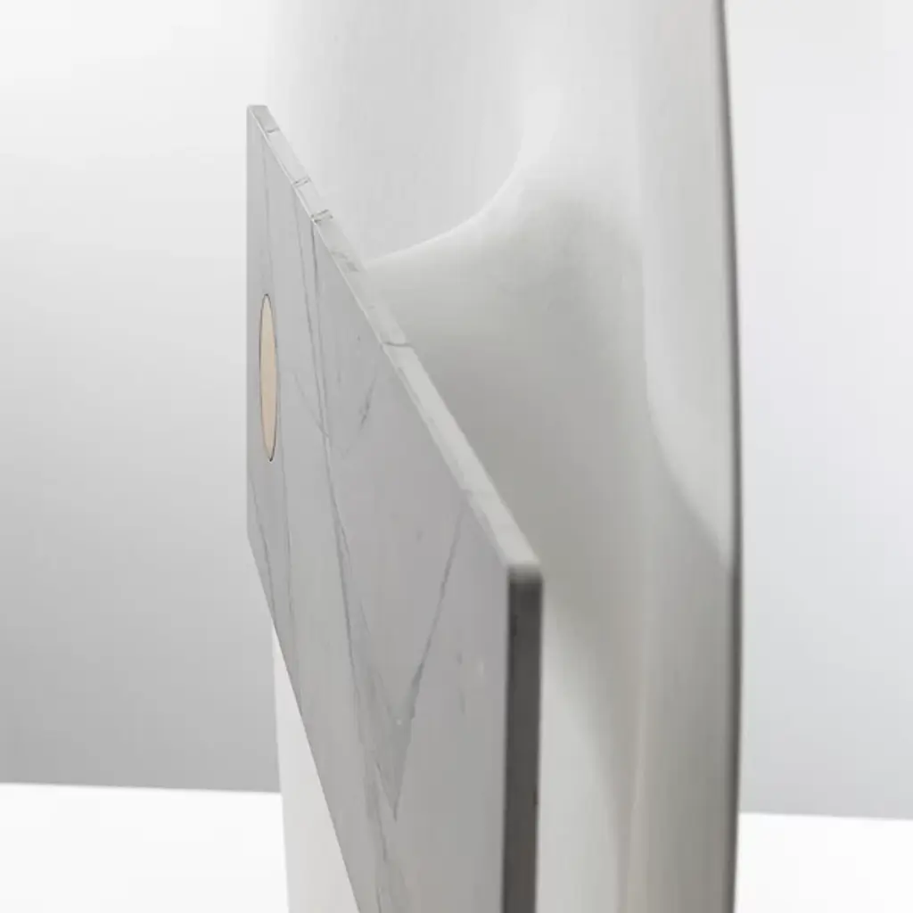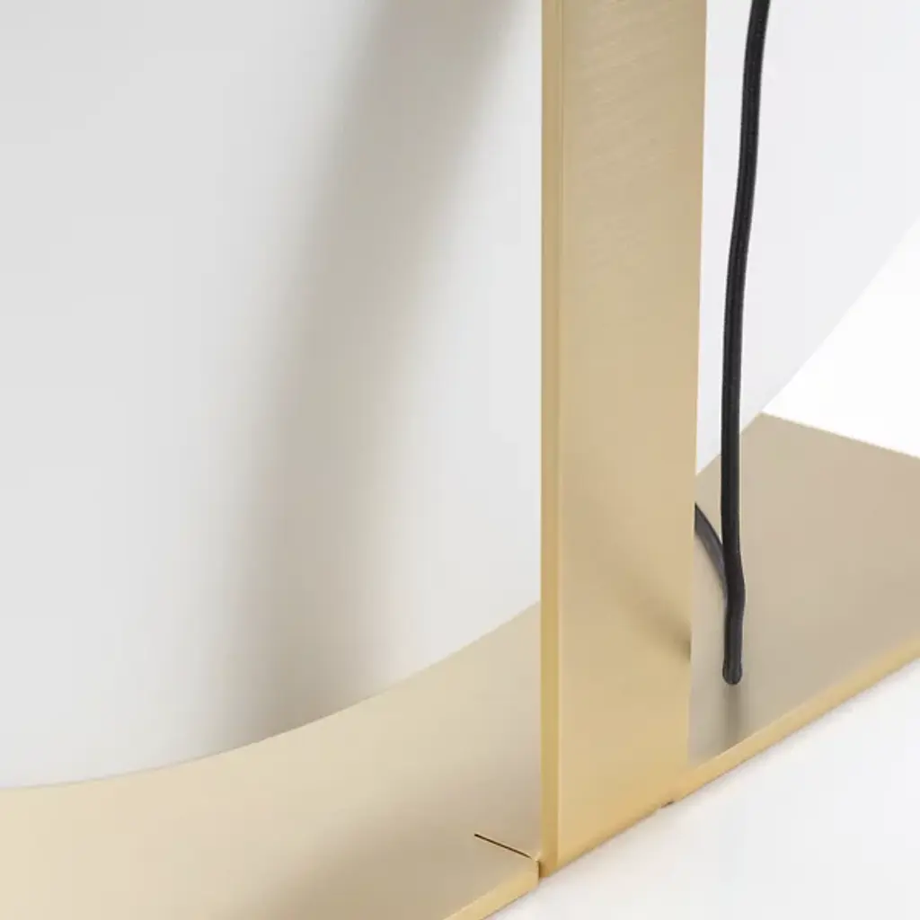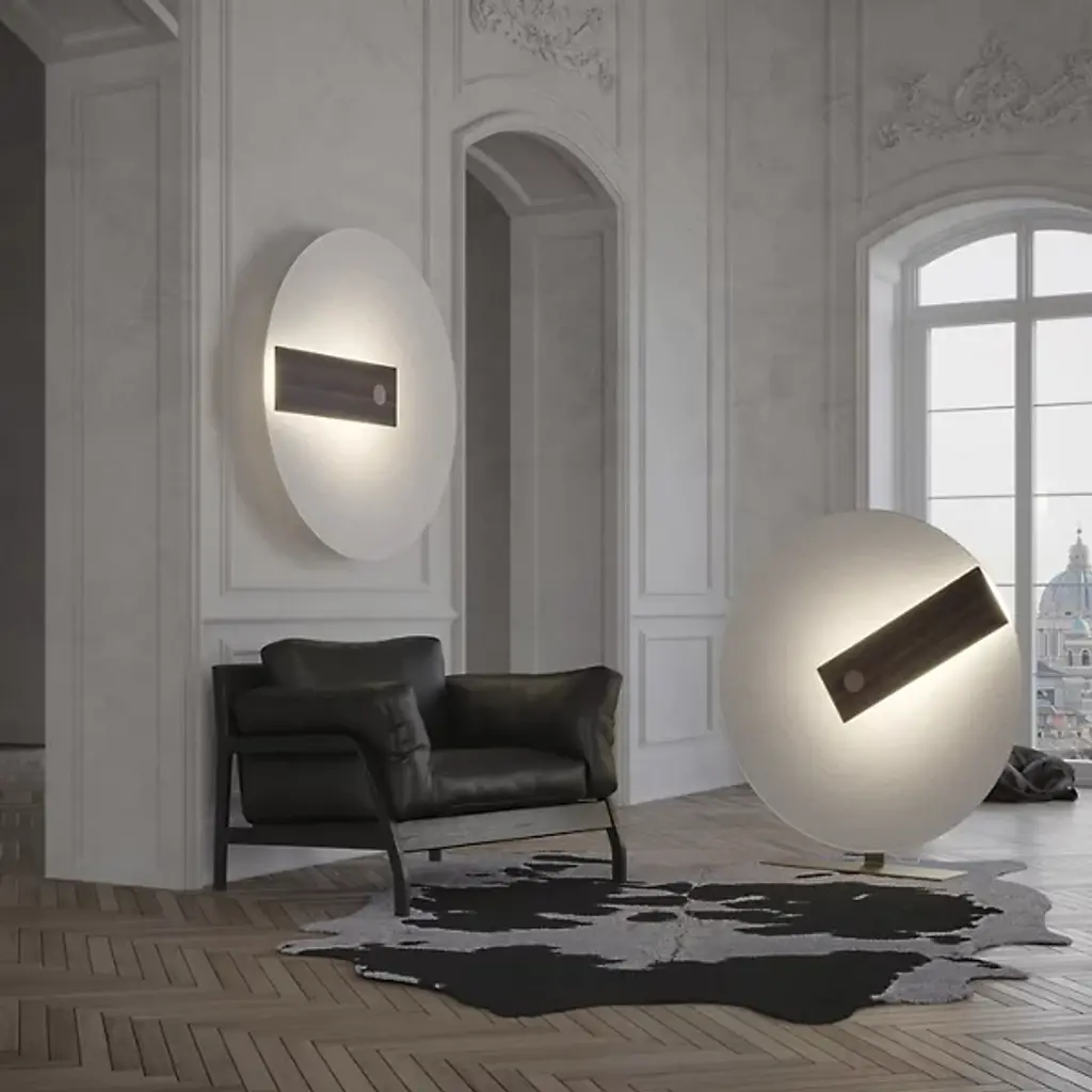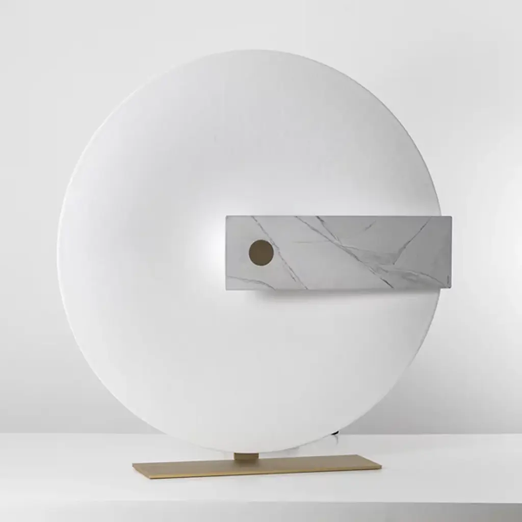 The Meridiana LED Floor Lamp by Hind Rabii takes inspiration from the sundial. It features a large disk representing the sun, which casts light through a clock-hand-like panel, creating a dramatic interplay of light and shadow. Handcrafted by skilled artisans in Verviers, Belgium, each chandelier is meticulously produced and undergoes multiple quality inspections to ensure superior craftsmanship. This elegant, artistic design adds a sophisticated, modern touch to any space, offering stunning visual appeal and functional illumination.