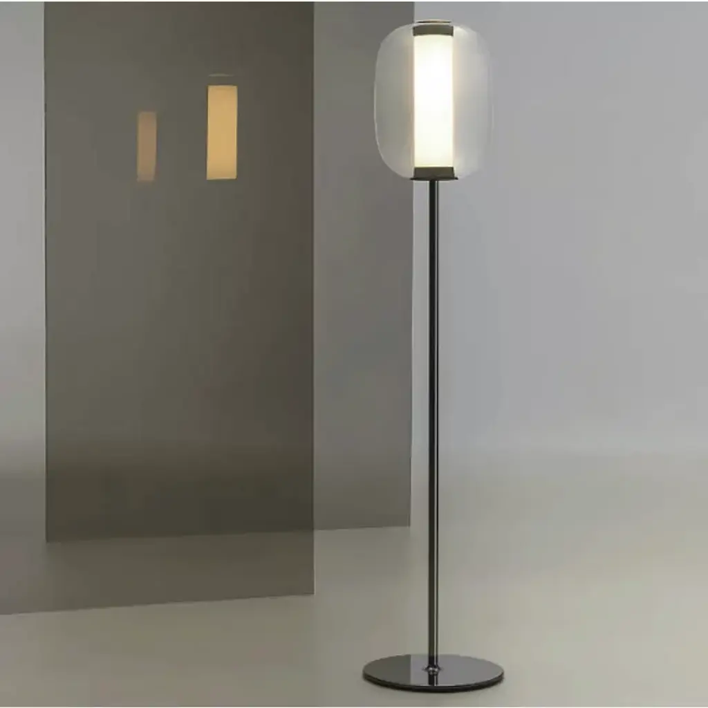 The "shape of light" is the heart of the Meridiano LED Floor Lamp from FontanaArte, which Gabriele and Oscar Buratti designed. What began with the Equatore lamps in 2017 has grown to include the elegant Tropico and Meridiano designs, now featuring a new floor-standing version. This luminous creation combines glass and metal, allowing light to pass through opaline, colored, and transparent layers. The result is a magical play of light, creating warm, inviting patterns and an enchanting ambiance in any space.