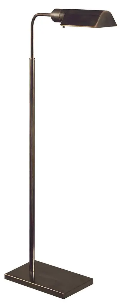 The perfect armchair reading light. Studio floor lamp is adjustable to height and styles an old-school design in bronze to suit both traditional and contemporary living rooms.W9 x D6 x H34 in Materials | MetalBulb (not incl.) Recommended E27