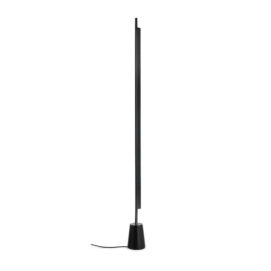 The Compendium Metal Bar Floor Lamp by Luceplan combines sleek design with high functionality, featuring a rotating body that directs light effortlessly toward the wall for a soft, ambient glow. Constructed with a extruded aluminum body and a die-cast zinc alloy base, this lamp brings sophistication to any space. Available in two color temperature options, it offers adaptable lighting tailored to your preference. The black base and in-line foot dimmer enhance convenience and allow easy adjustments to brightness.