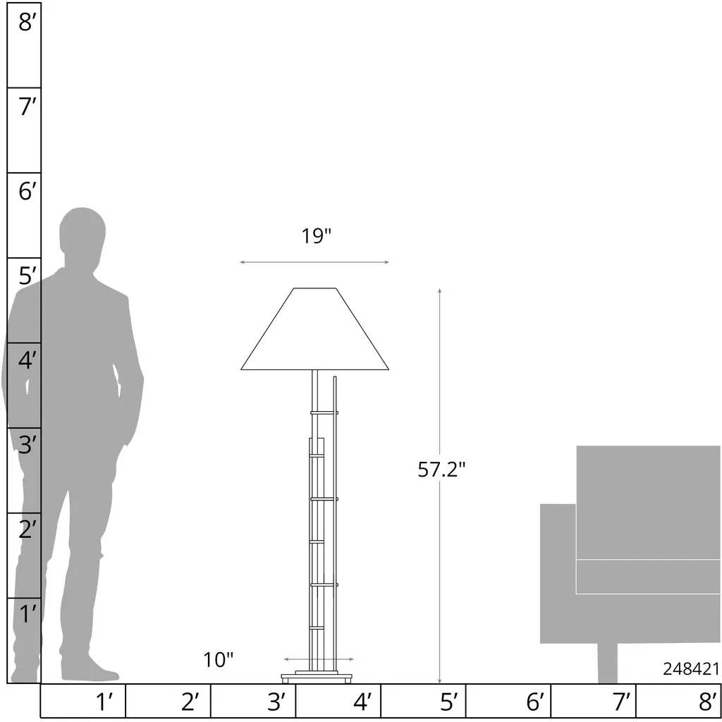 The stylish shade topping the steel tube of our Metra Floor Lamp looks like it's striving to reach the sky. Steel bars accompany and support the tube on its vertical journey. The fine, straight lines of the design readily add a touch of class to a room.