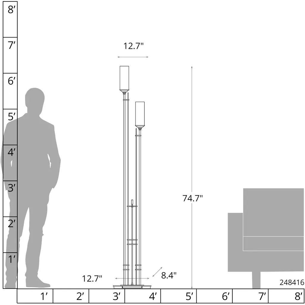 Metra Twin 74.7 Inch 60 Watt Soft Gold Floor Lamp Portable Light, Tall