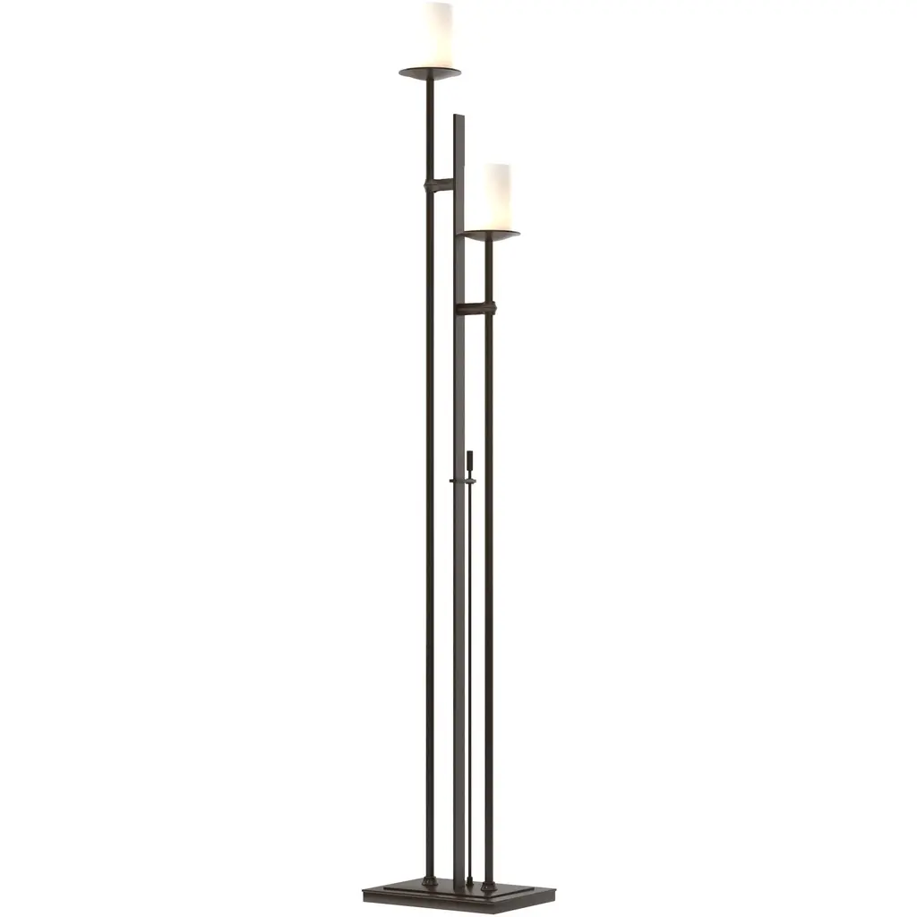 Metra Twin Tall Floor Lamp, Natural Iron Finish, Opal Glass