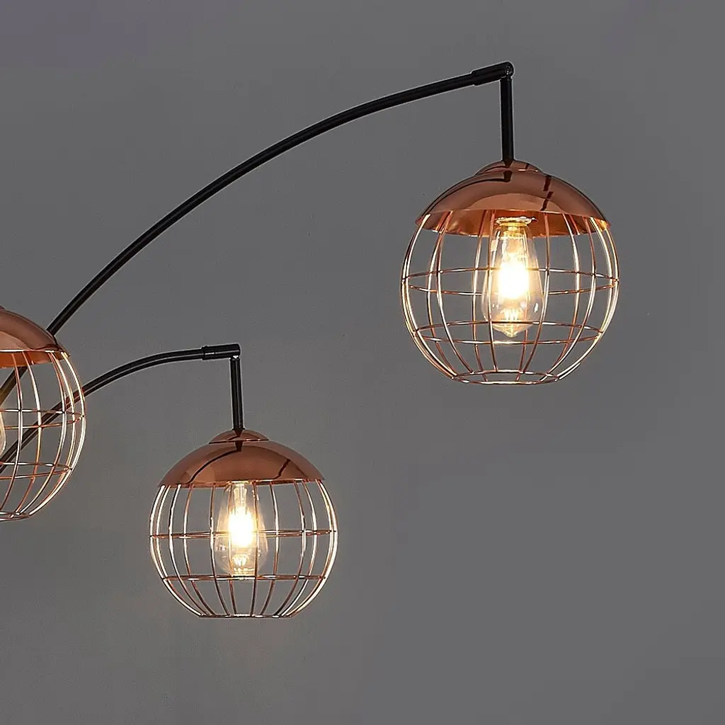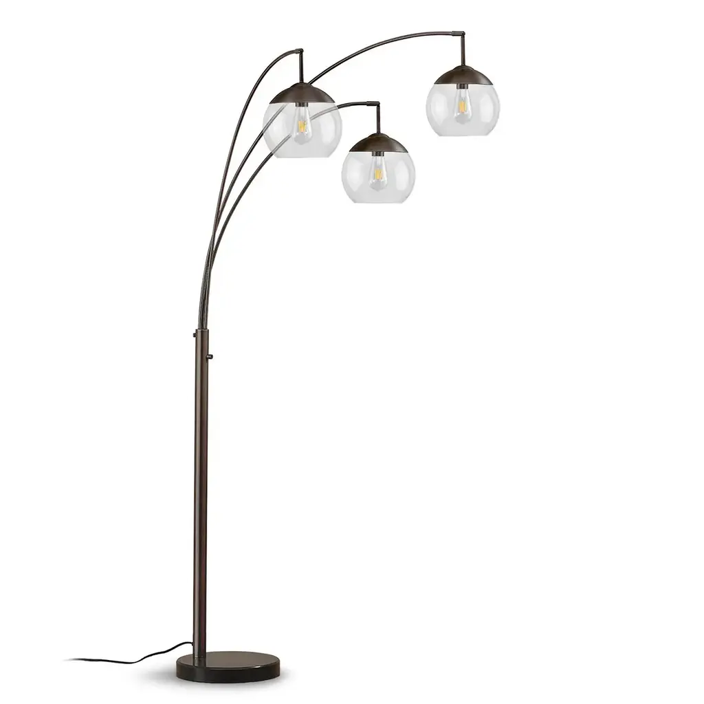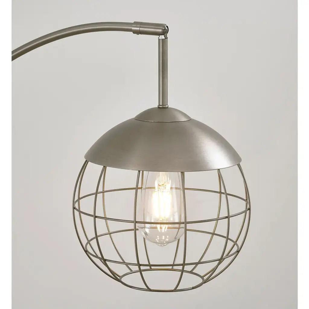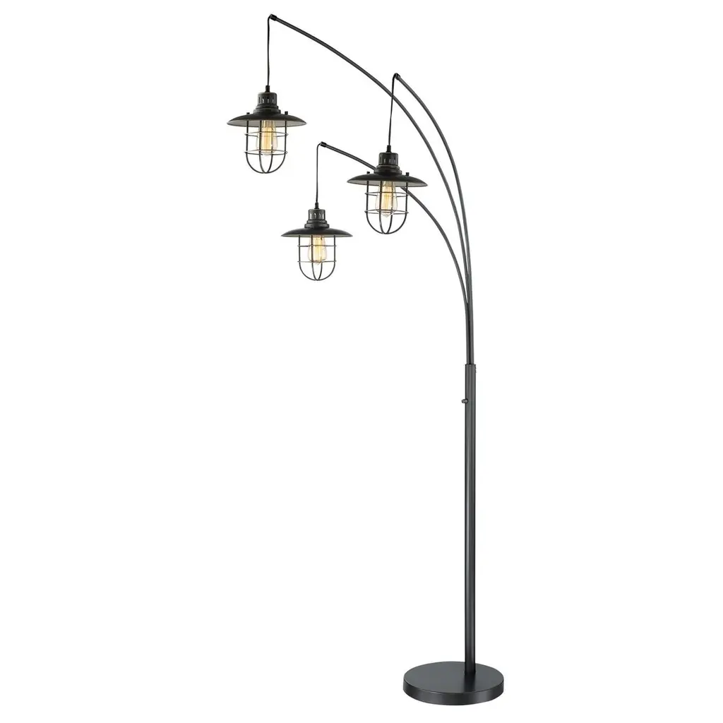 Add a charming touch to your living space with this modern and elegant Metro 3-light Wire Shade LED Dimmable Arch Floor Lamp. Featuring three swivel arches with globe-shaped wired shades, this lamp offers a playful yet sophisticated design. The lamp includes a rotary dimmer switch and vintage-style LED Edison bulbs for added convenience. Choose from metal grey, espresso bronze and copper, or espresso bronze finish options to match your decor.Features: