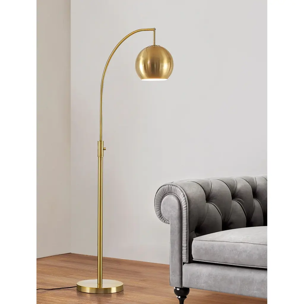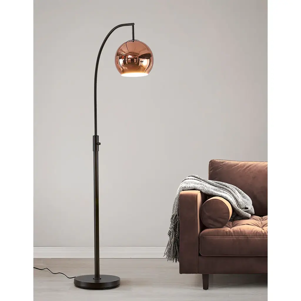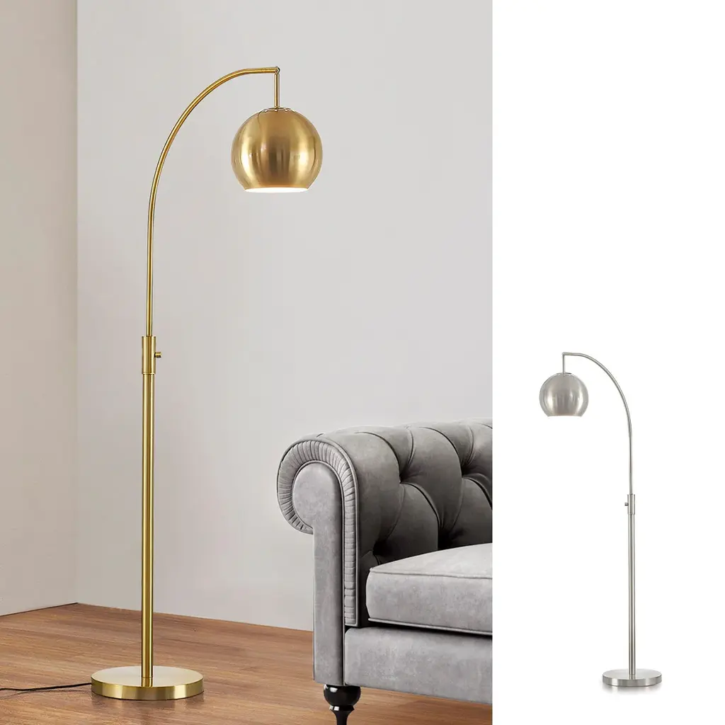 HOMEGLAM Design, the Metro one light floor lamp design series features over all 68” high 24” light reach arc arms for most of space uses. The floor lamp come with a 9 inch dimeter globe style lamp shade and controlled with easy reach on pole LED dimmable rotary switch, it also included with a free dimmable LED vintage style warm color bulb. The floor lamp built with metal construction on steady marble lamp base. The Metro floor lamp series from HOMEGLAM creates the best lighting design solution for your spaces. Features: • 68" over all height, 24" reach arched floor lamp • Adjustable angle one light 9" ø lamp shades • Variable selections of globe style lamp shapes • Strong metal construction, heavy weighted lamp base • Easy reach on pole rotary LED dimmer switch • Includes one 9W 2700K vintage style LED ST64 clear Edison bulbs • UL Listed, Assembly required