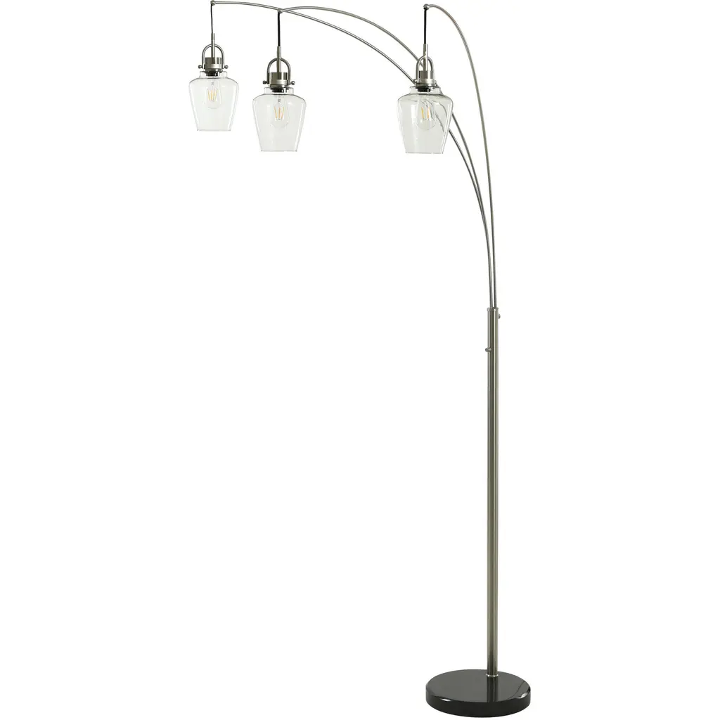 HOMEGLAM Design, the Metro three lights floor lamp design series features over all 84" high 46" long reach adjustable swivel arc light arms for larger living spaces. the floor lamp 3 lights lay out in 3 heights and controlled with easy reach on pole LED dimmable rotary switch, it also included with free three dimmable LED vintage style warm color bulbs. The floor lamp built with metal construction on steady marble lamp base. The Metro floor lamp series from HOMEGLAM creates the best lighting design solution for your spaces. Features: • 83" over all height, 46" reach for larger spaces • Three heights and reaches swivelable light arms • Variable selections of 9" ø globe style glass lamp shapes • Strong metal construction, heavy luxury marble base • Easy reach on pole rotary LED dimmer switch • Includes three 9W 2700K vintage style LED ST64 clear Edison bulbs • UL Listed, Assembly required