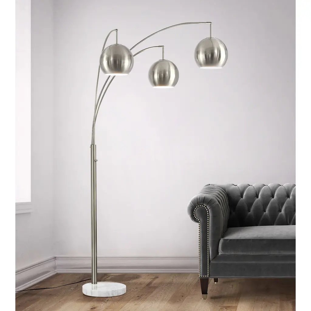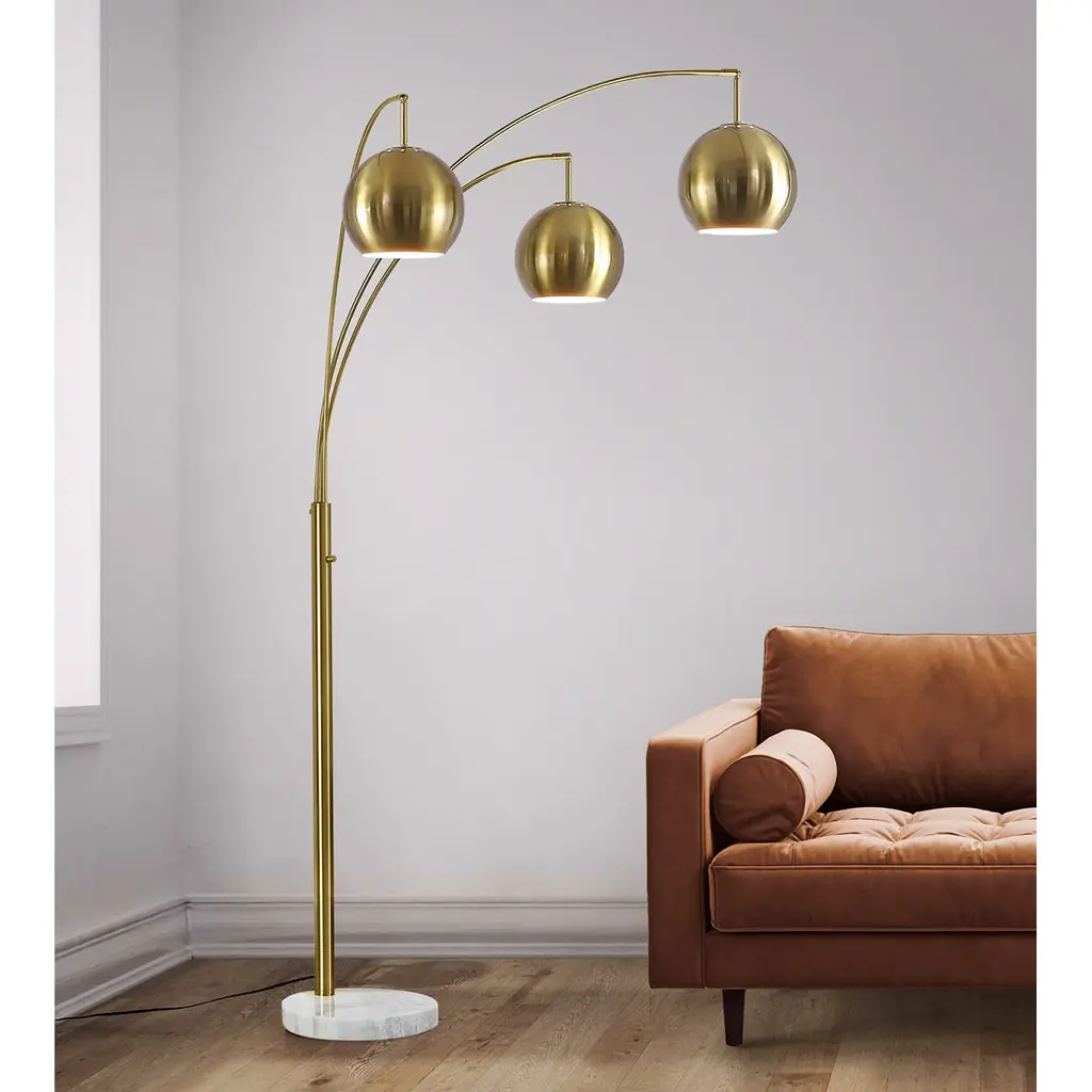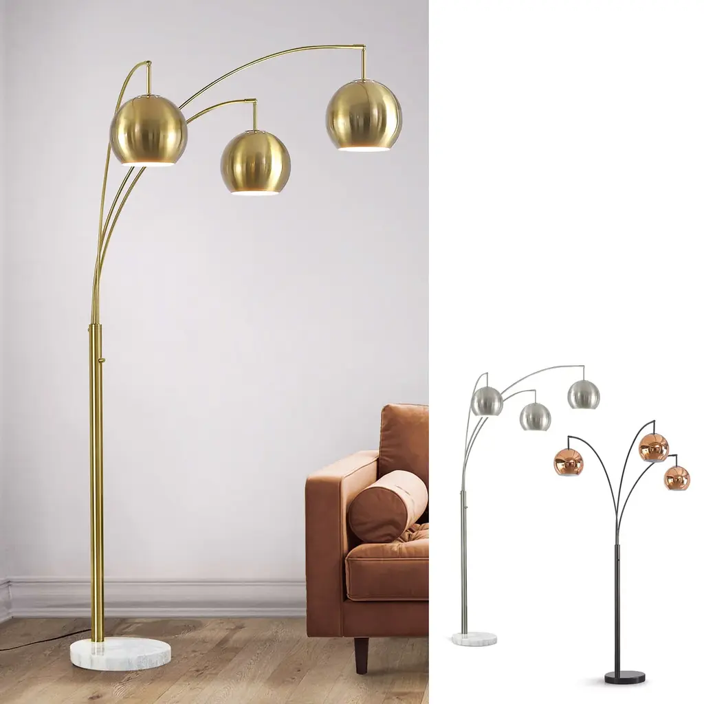 The Metro floor lamp series from HOMEGLAM Design is the perfect lighting solution for larger living spaces. With an adjustable swivel arc that stretches 46" long and stands 84" tall, this lamp features three lights set at different heights to create a unique lighting experience. The easy-to-use LED dimmer switch and included dimmable LED vintage style bulbs make it easy to set the perfect ambiance. The Metro floor lamp is constructed with high-quality metal and sits on a sturdy marble base for added stability.Features: