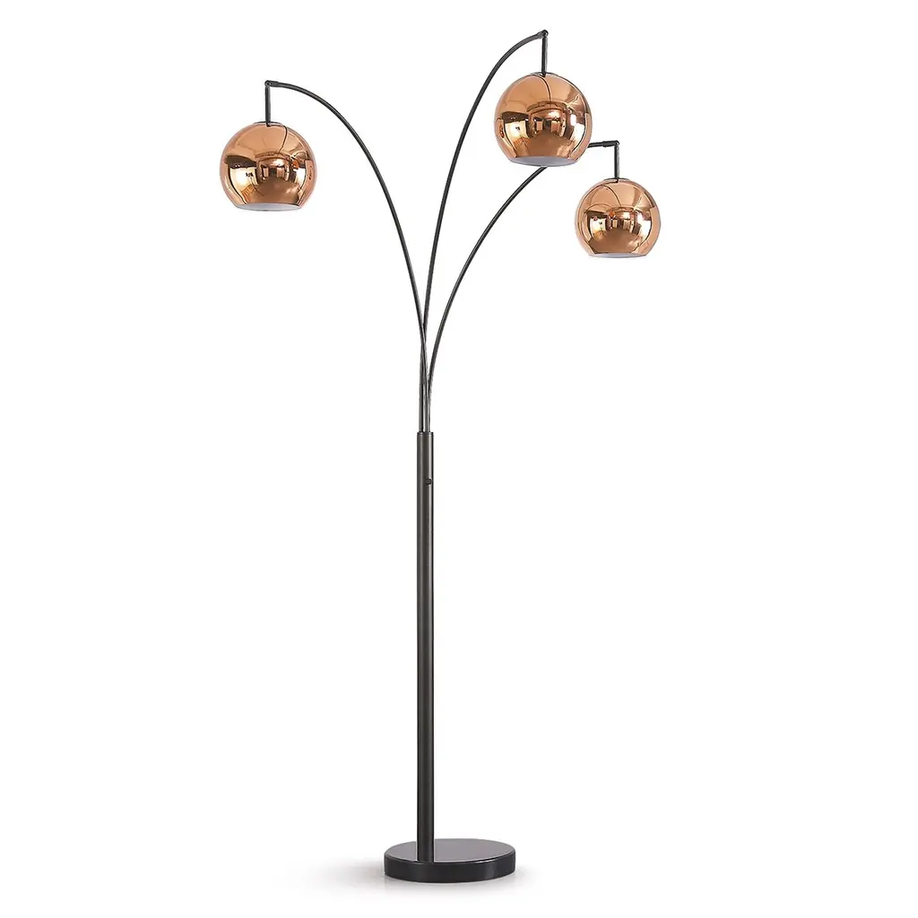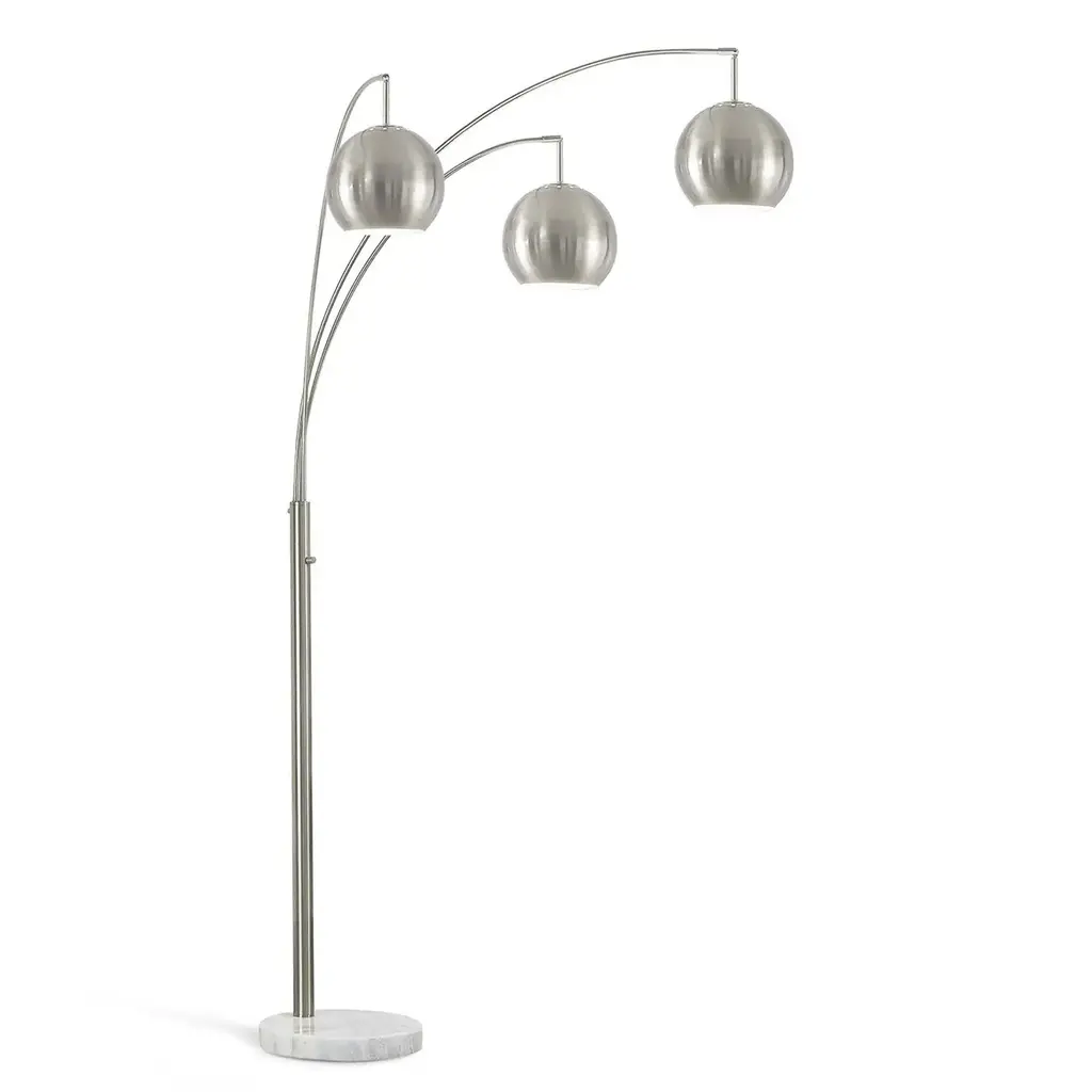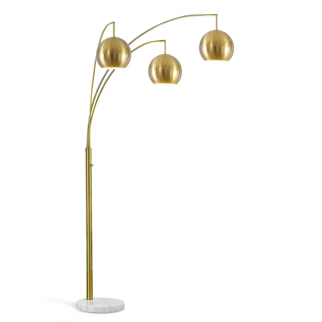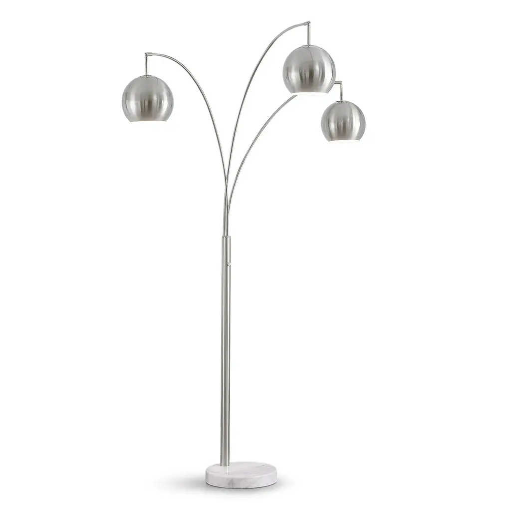 The Metro floor lamp series from HOMEGLAM Design is the perfect lighting solution for larger living spaces. With an adjustable swivel arc that stretches 46" long and stands 84" tall, this lamp features three lights set at different heights to create a unique lighting experience. The easy-to-use LED dimmer switch and included dimmable LED vintage style bulbs make it easy to set the perfect ambiance. The Metro floor lamp is constructed with high-quality metal and sits on a sturdy marble base for added stability.Features: