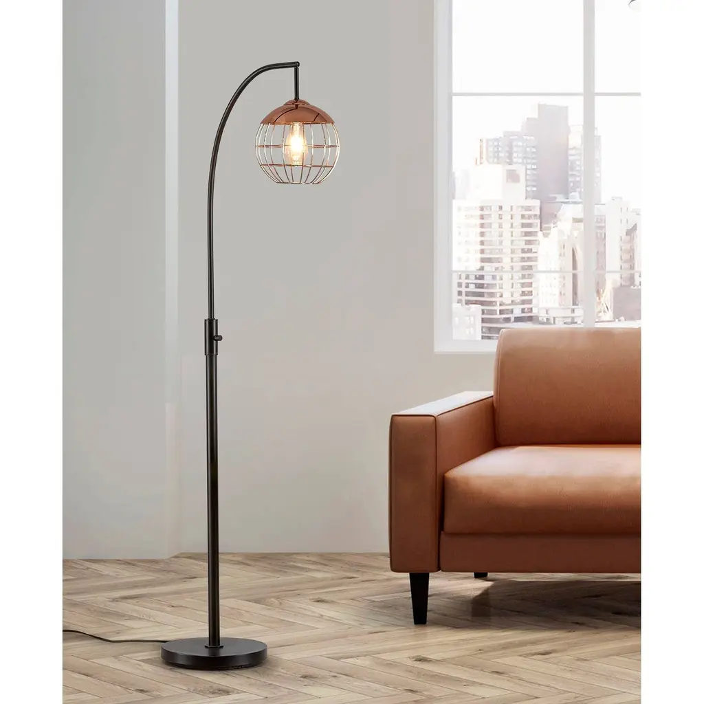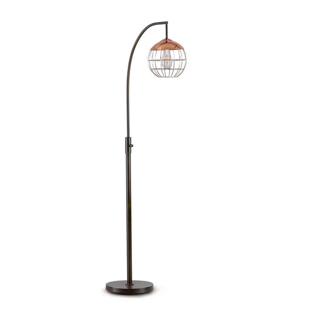 Metro-S Metal Wire Shade Led Dimmable Floor Lamp With Vintage Led Bulb - Bronze/polished Copper