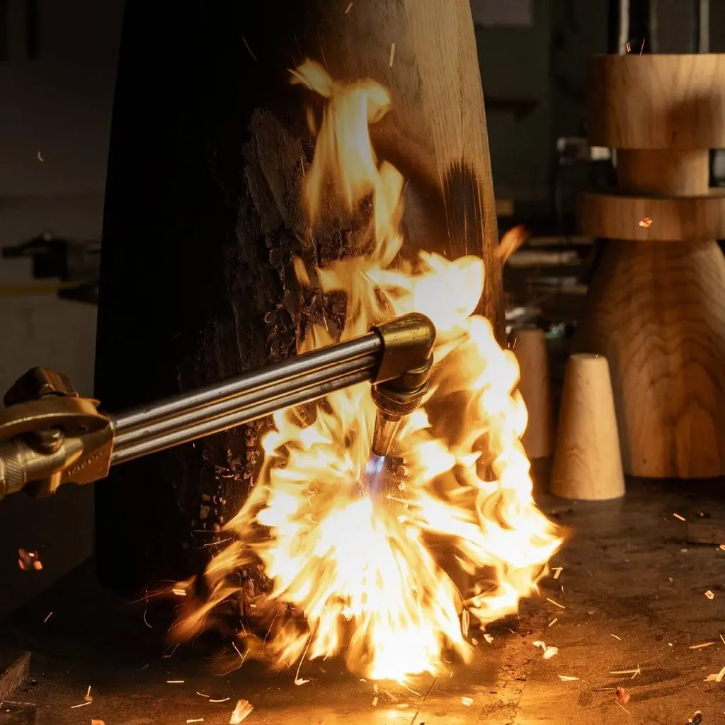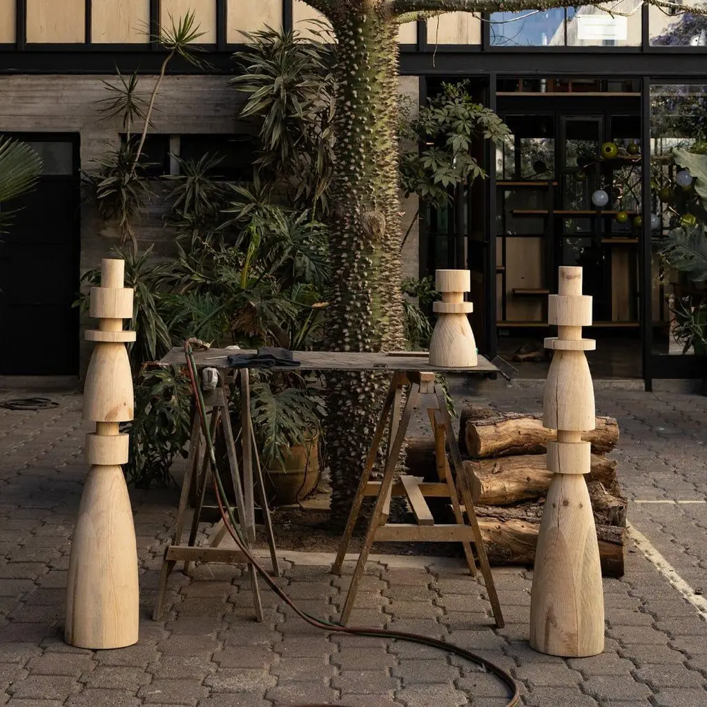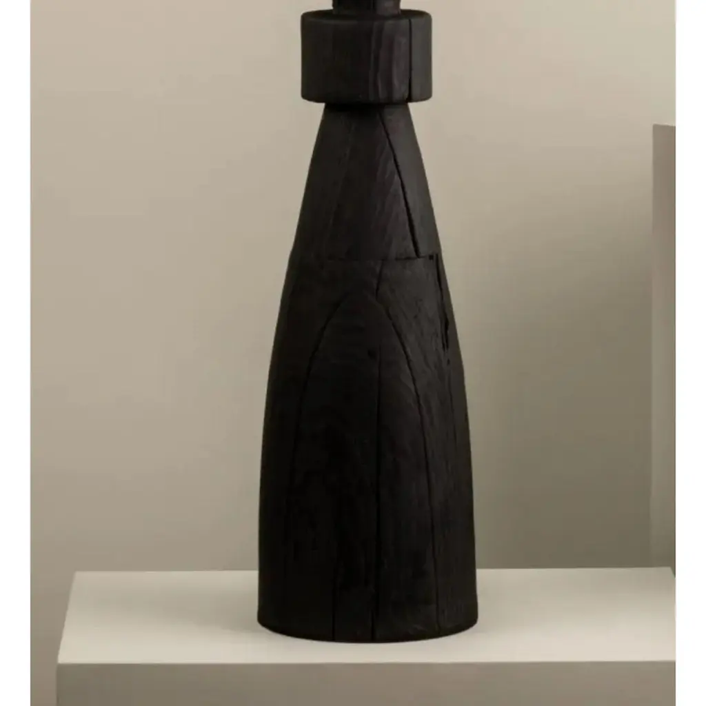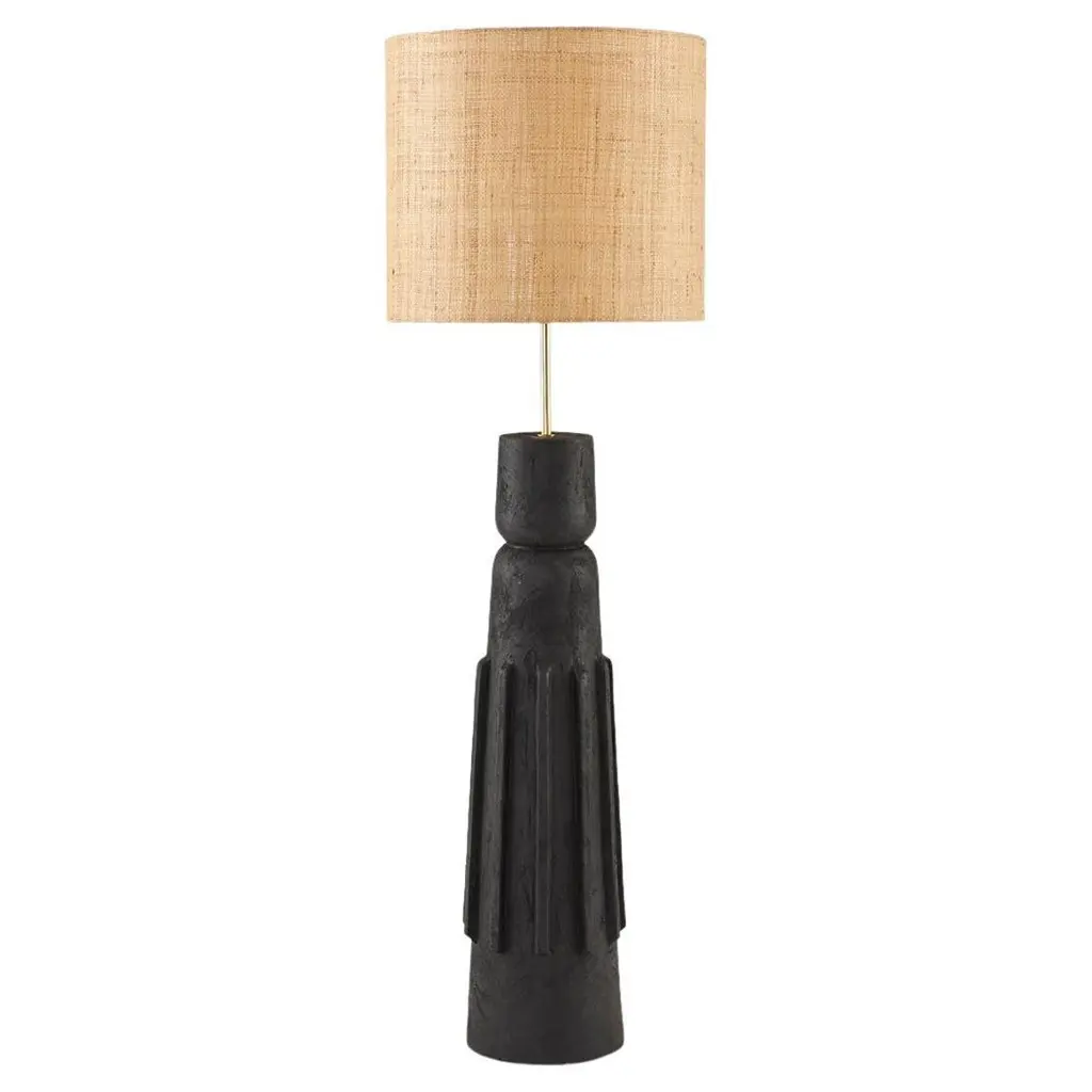 Mezquite Sculptural Pine Wood Floor Lamp with Linen Shade by Isabel MoncadaDimensions: Ø 60 x H 181 cm.Materials: Linen and pine wood.Like a chess bishop, Mezquite makes its presence felt in a resounding manner. It has a sturdy wood base, its dark finish gives great character and its edges are embossed when burned with the Japanese Shou Sugi Ban technique.Turned pine wood base with burnt finish and flexible lampshade made with natural linen fabric. The linen shade can be disassembled to be dry-cleaned and can be steamed to remove wrinkles.All our lamps can be wired according to each country. If sold to the USA it will be wired for the USA for instance. Please contact us. Isabel Moncada is a Mexican designer specialized in lighting.By exploring and finessing traditional manufacturing techniques, Isabel has developed her own mechanisms and transformed materials to improve her designs as well as carve out her personal style.