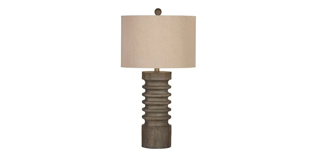 Mezquite Sculptural Pine Wood Floor Lamp With Linen Shade By Isabel Moncada