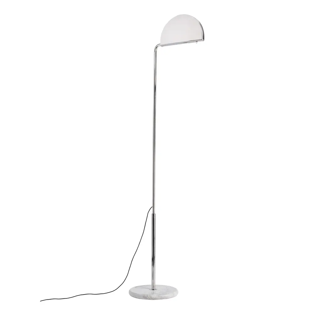 A unique design from every angle, the Mezzaluna Floor Lamp from DCW editions brings versatile lighting design to any corner of your home. A reissue of the iconic Italian floor lamp from the 1970's, this stunning luminary boasts a half-moon enamel shade and sleek marble base for unmatched stability. Fully customizable, the height is adjustable, while the shade tilts up and down, acting as both a reading lamp and ambient lighting. Updated with LED technology, this lamp is equipped with a slide dimmer on the lamp head to set the perfect mood for any occasion. Highlights