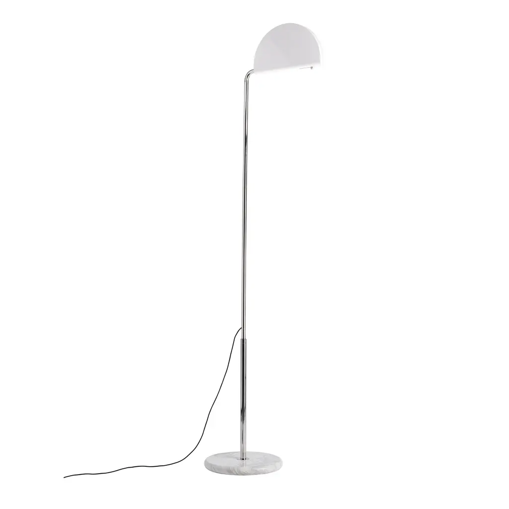 A unique design from every angle, the Mezzaluna Floor Lamp from DCW editions brings versatile lighting design to any corner of your home. A reissue of the iconic Italian floor lamp from the 1970's, this stunning luminary boasts a half-moon enamel shade and sleek marble base for unmatched stability. Fully customizable, the height is adjustable, while the shade tilts up and down, acting as both a reading lamp and ambient lighting. Updated with LED technology, this lamp is equipped with a slide dimmer on the lamp head to set the perfect mood for any occasion. Highlights