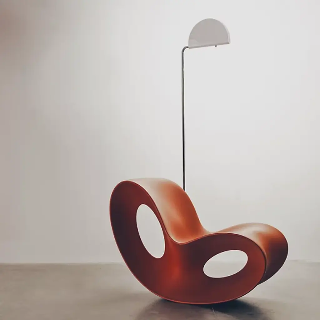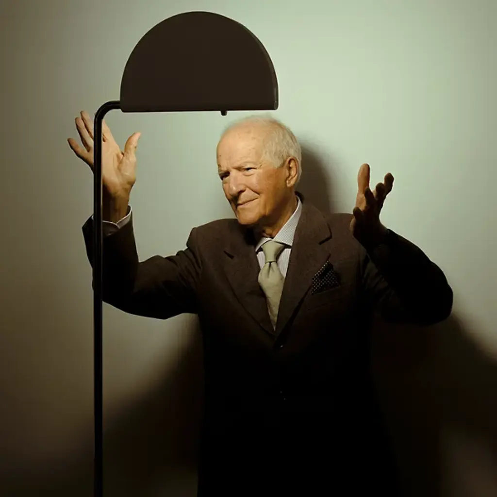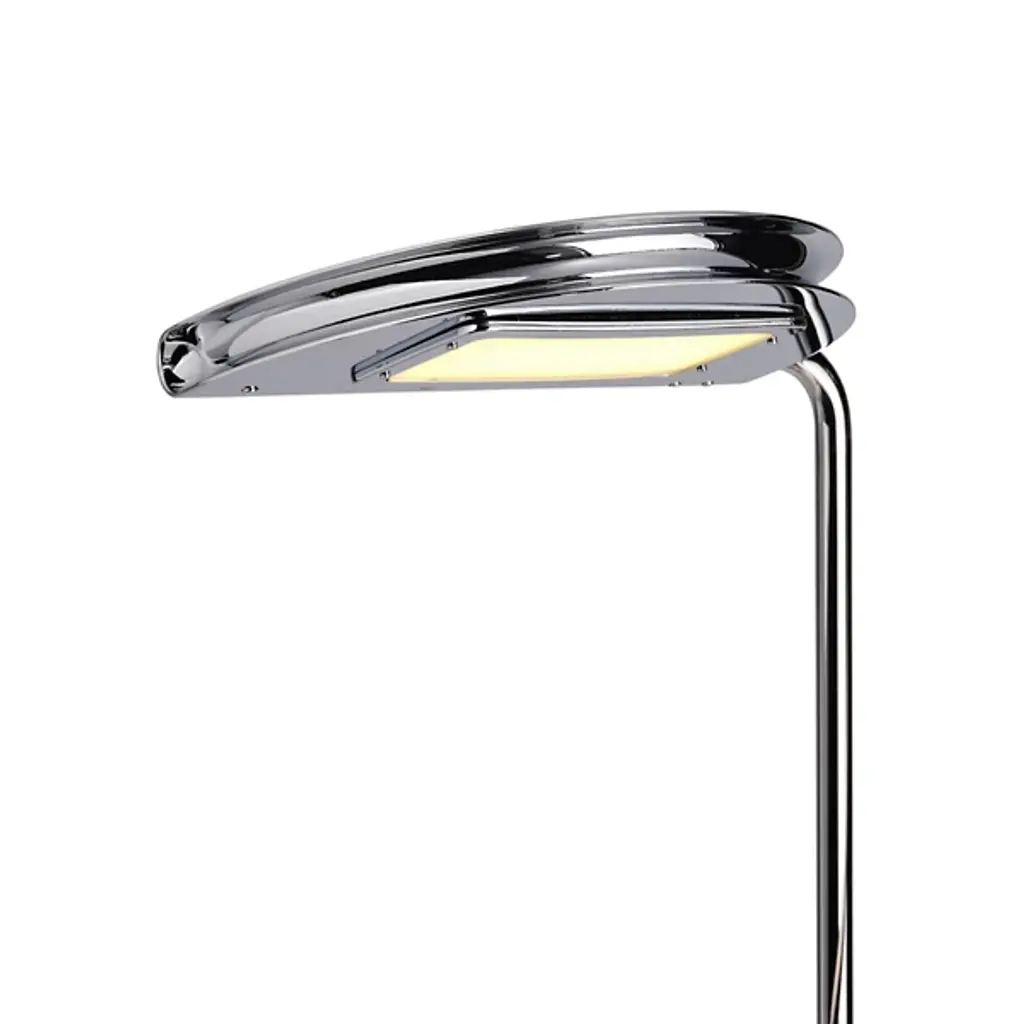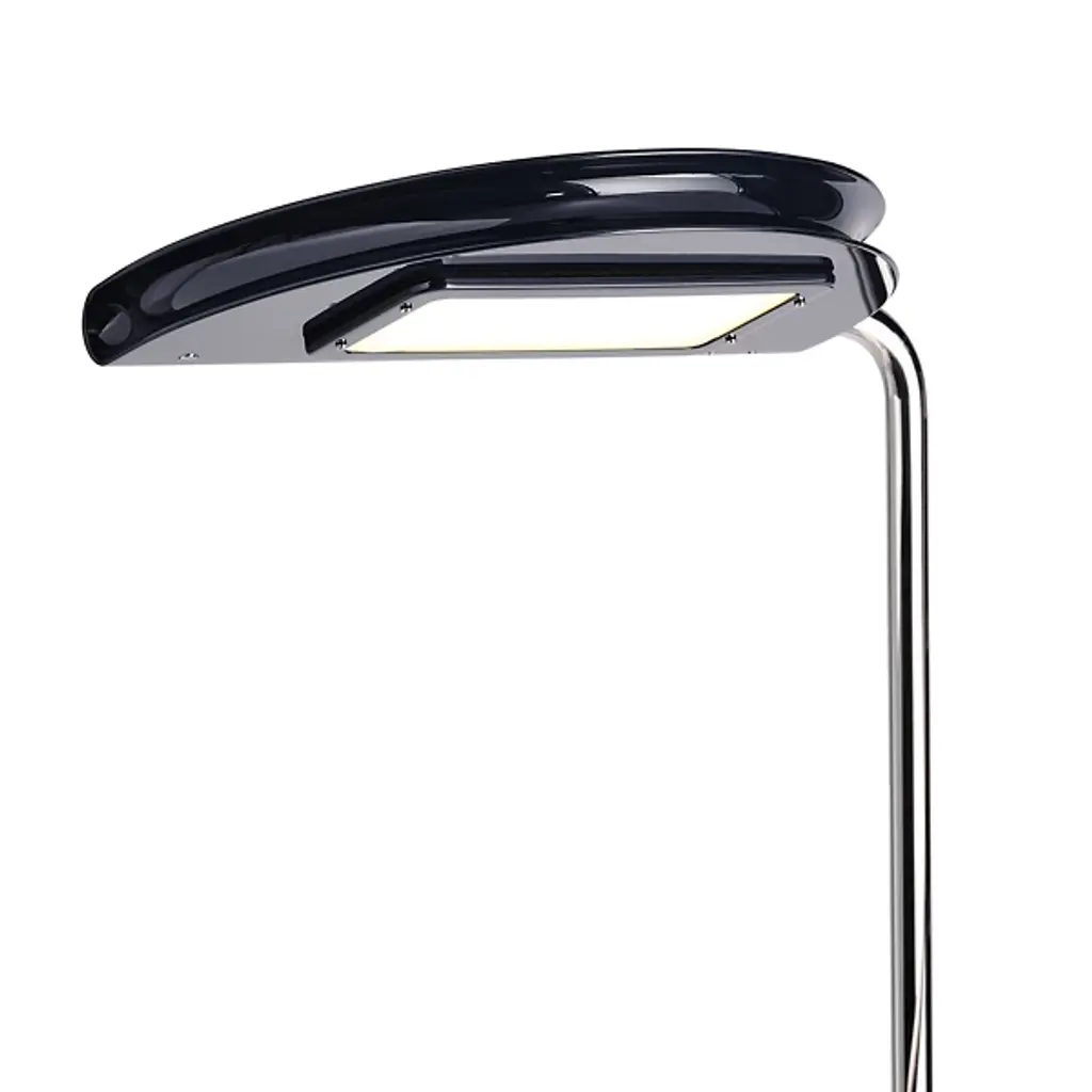 A smooth stunner. The Mezzaluna LED Floor Lamp from DCW Editions is visually appetizing and elegant, made from rich materials shaped with clean lines and contemporary appeal. It is an original design created by Bruno Gecchelin in 1975 and named for the iconic, curving Italian knife. It ascends from a marble disc base, placing strong lamping inside a curving head at the end of a slender stem. The nature of stone gives each base a natural note of individual character, while the light can be adjusted to illuminate a corner nook or intensified to light up an entire room.