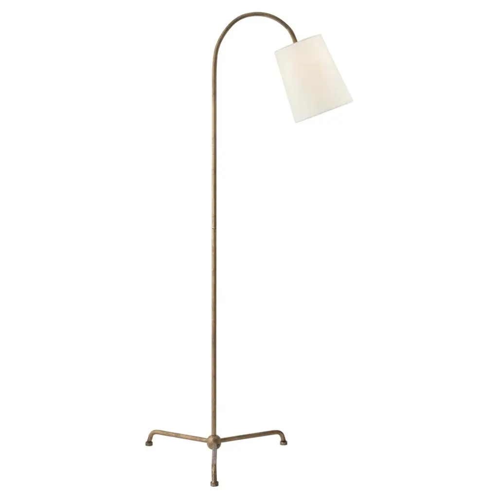 The Mia Floor Lamp by Visual Comfort Signature, formerly known as Visual Comfort, employs clean lines and simple curves to impart a sense of design and style to any space. A Natural Paper shade smoothly and evenly distributes light to the room while the large tripod base below offers stability and support. Complementary to any décor. Designed by Thomas O’Brien.