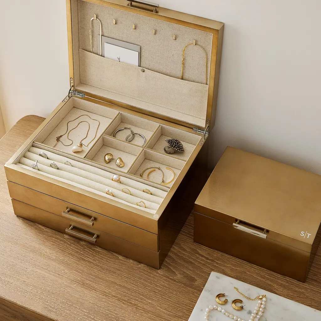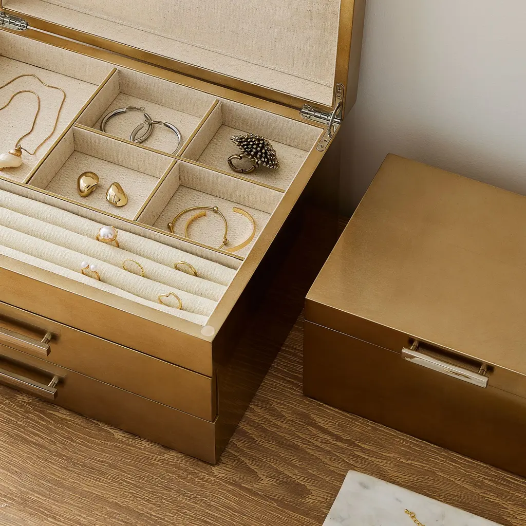 Mid-Century Champagne Lacquer Jewelry Boxes