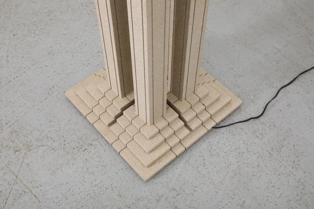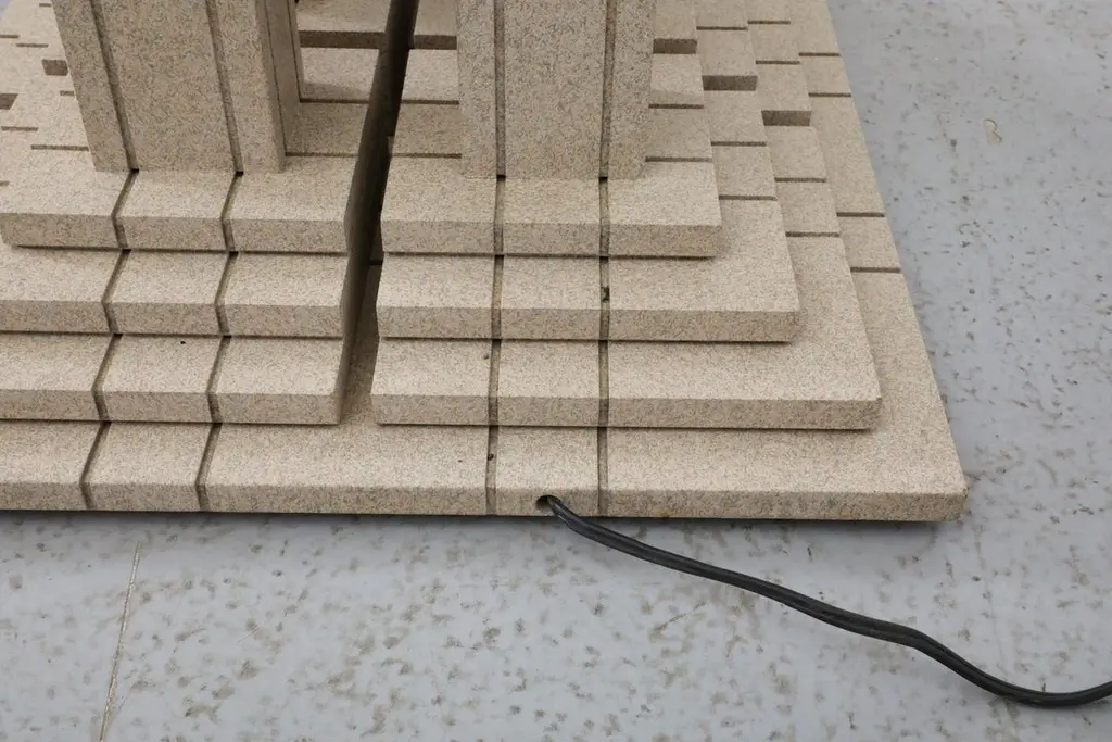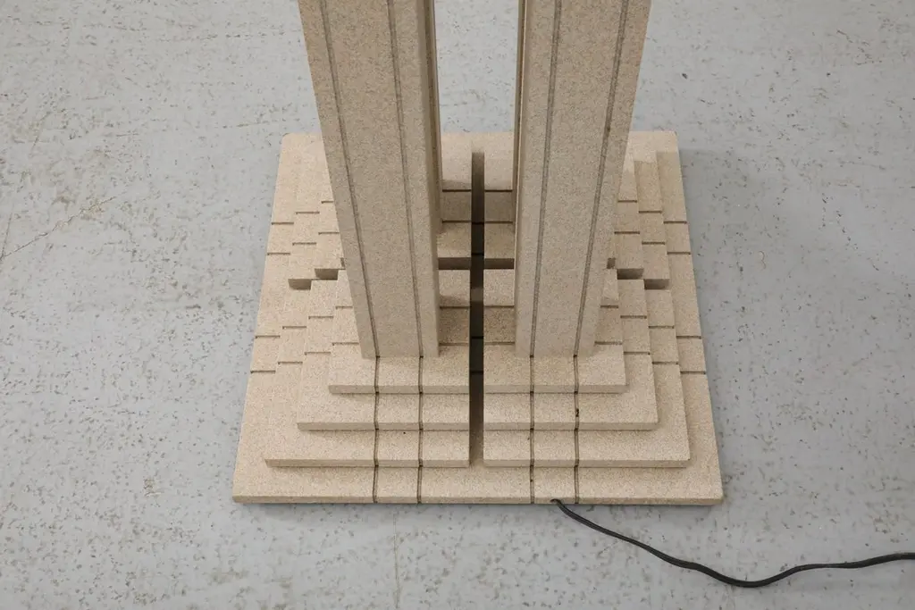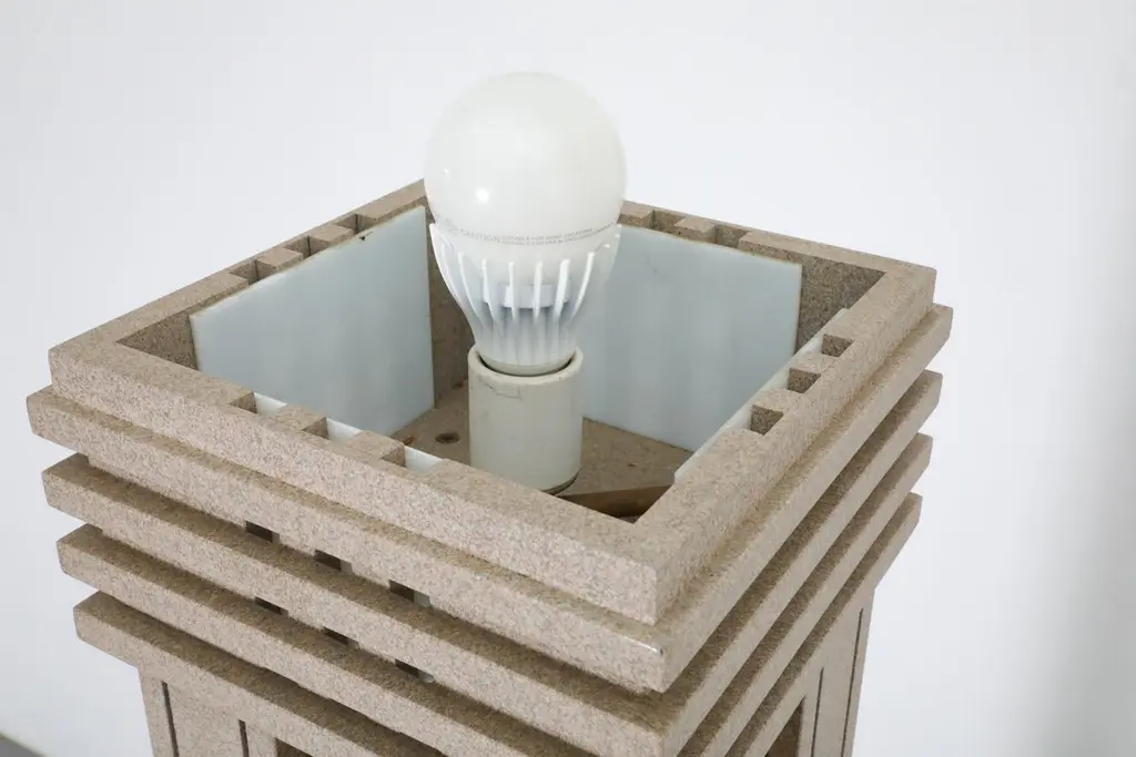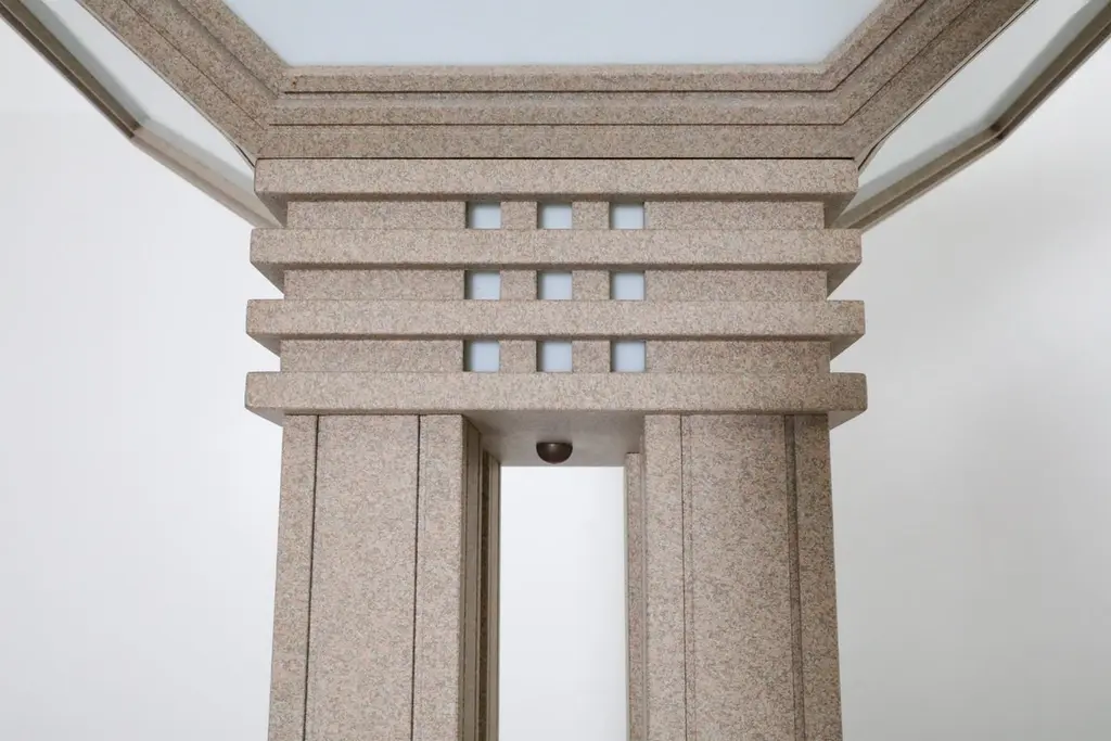 Mid-Century Frank Lloyd Wright-Inspired Torchiere Floor Lamps with Faux Granite and White Glass Panels – Individually AvailableEvoking the iconic Prairie School aesthetic of Frank Lloyd Wright, these mid-century torchiere floor lamps feature a sculptural design with strong architectural lines and a refined material palette. The columnar bases are finished in a faux granite texture, providing an earthy, organic presence, while inset white glass panels softly diffuse light in all directions, echoing the geometric harmony of Wright’s design principles.Each lamp is sold individually and accepts a standard E26/E27 medium base bulb. These striking lamps serve as both functional lighting and architectural statements—ideal for interiors inspired by mid-century modernism or Arts & Crafts design.Key Features:Design: Inspired by Frank Lloyd Wright; mid-century modern eraMaterials: Faux granite finish with inset white glass panelsFunction: Torchiere-style floor lampBulb: Standard medium base E26/E27 socketSold: IndividuallyCondition:Original vintage condition with visible surface wear consistent with age and use. One lamp has two cracks in the glass shade (structurally stable, does not affect function). Faux granite finish shows minor scuffing and patina typical of vintage lamps.