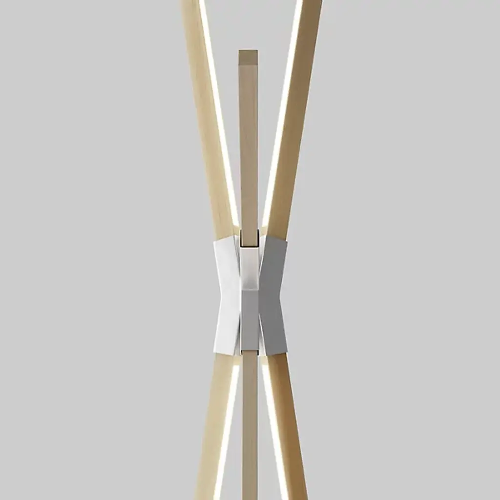 The Middle Bang LED Floor Lamp by Stickbulb is an eye-catching accent piece with timeless appeal. Uniquely able to use sleek, clean lines to evoke the organic look of an abstract tree, this highly customizable fixture features a metal hub that attaches to a series of wooden beams. Each sustainably sourced beam boasts an energy-efficient integrated LED light that emits a softly diffused glow. Wood finishes, metal types, and various placement abilities allow its user to create a distinctly unique form to fit the desired ambiance.
