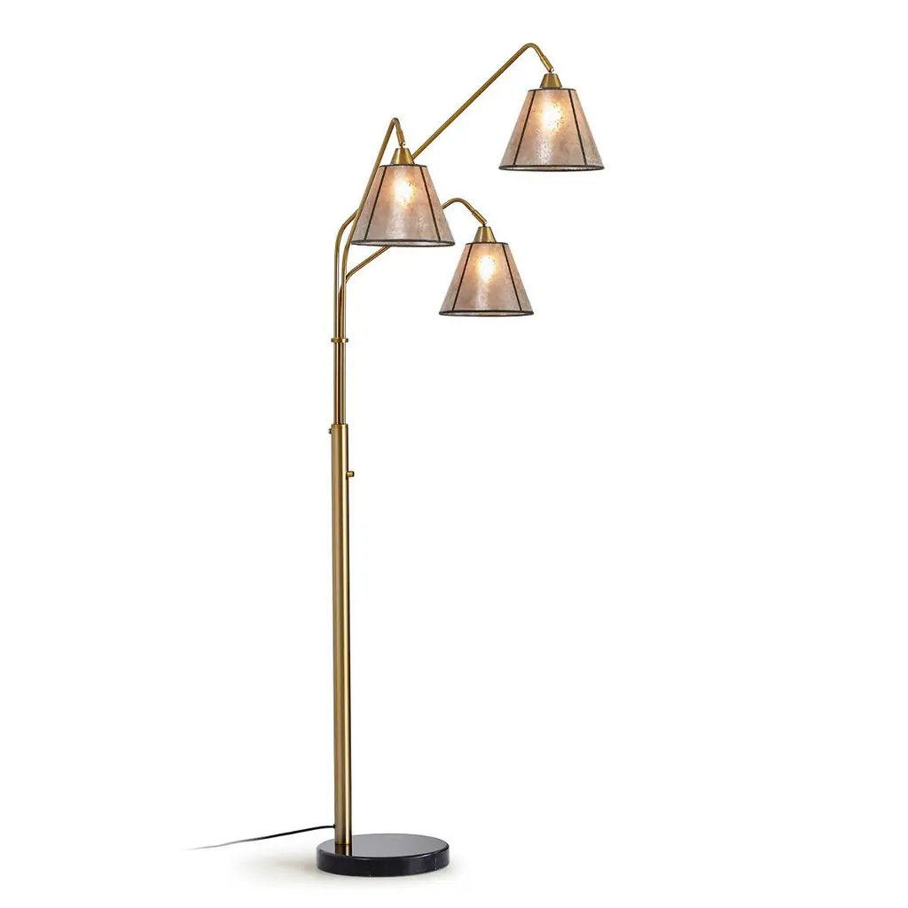 Midtown 3 Light Arch Floor Lamp With Mica Shade - Brushedbrass /Micashade