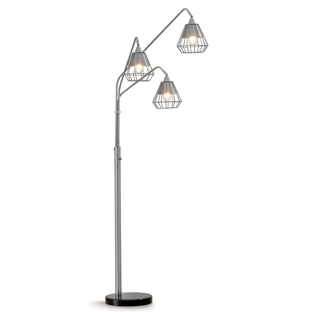 Midtown 3 Light Wire Shades Led Dimmable Arch Floor Lamp With Retro Led Bulbs, Brushed Metal Finish - N/a