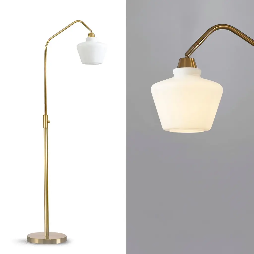 Midtown One Light Glass Shade 66"h Dimmable Led Floor Lamp With Vintage Led Bulb - Brushed Brass/white Glass