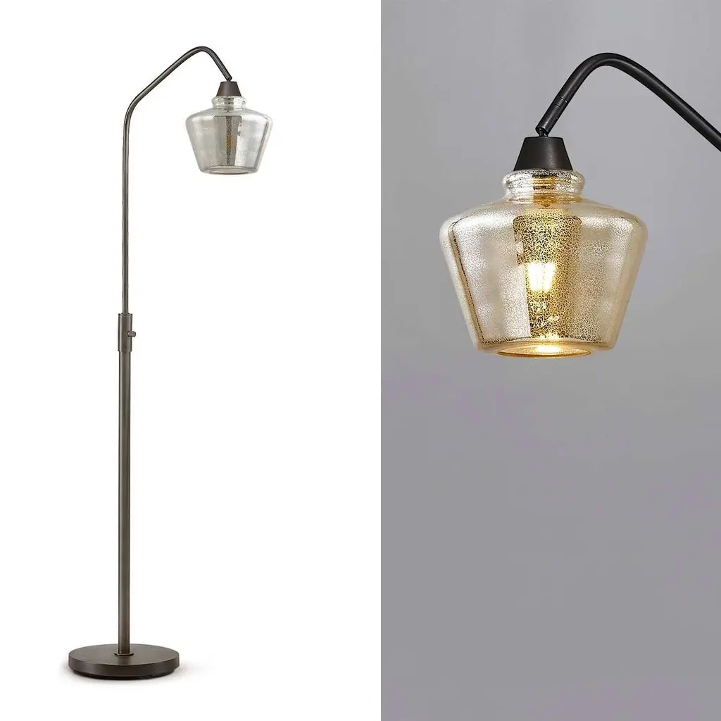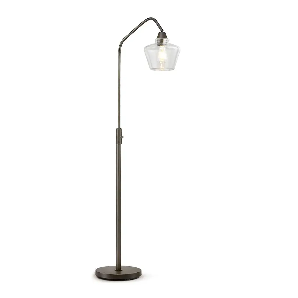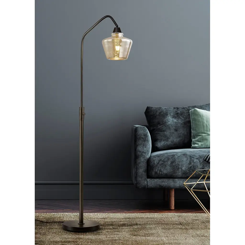 HOMEGLAM design, Midtown series 66" high one light floor lamp features a cone shape design glass shade. light controlled with an easy reach on pole rotary dimmable switch. A 8W warm light LED vintage style edison bulb included. Strong metal built with steady weight lamp base, the Midtown series one light floor lamp brings creative lighting design solution best for your living style. 66" over all height, 25" reach floor lamp Hand blown glass gamp ghade 8.7" ø, 7.5"H Tilt adjustable lamp shade light Strong Metal built with 12" steady weighted lamp base Easy reach on pole rotary LED dimmer switch Includes 1pc 8W 2700k vintage style LED ST64 clear Edison bulb 110V. UL Listed, assembly required