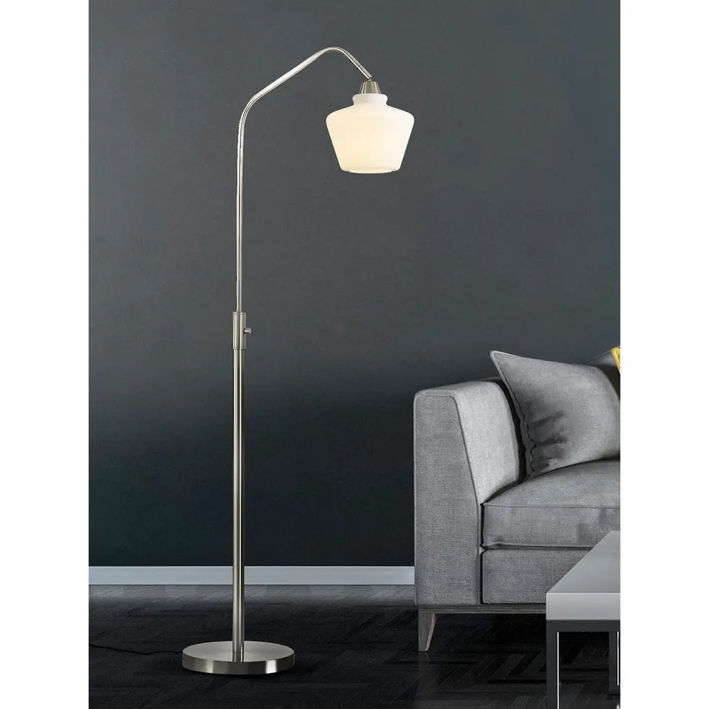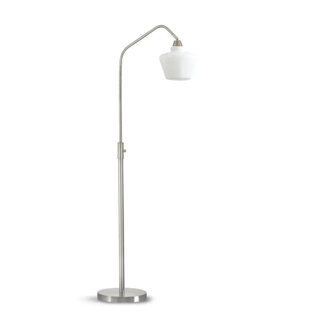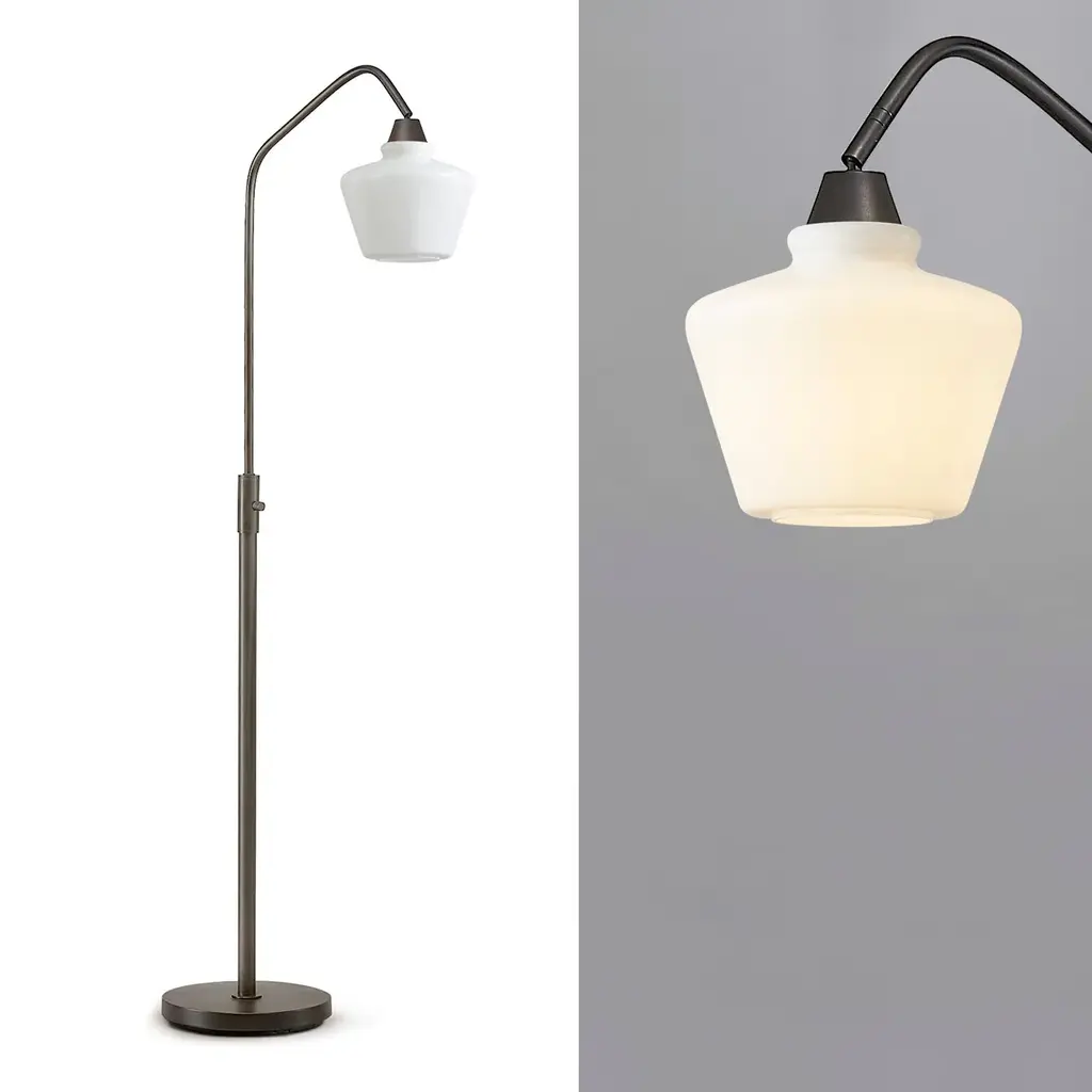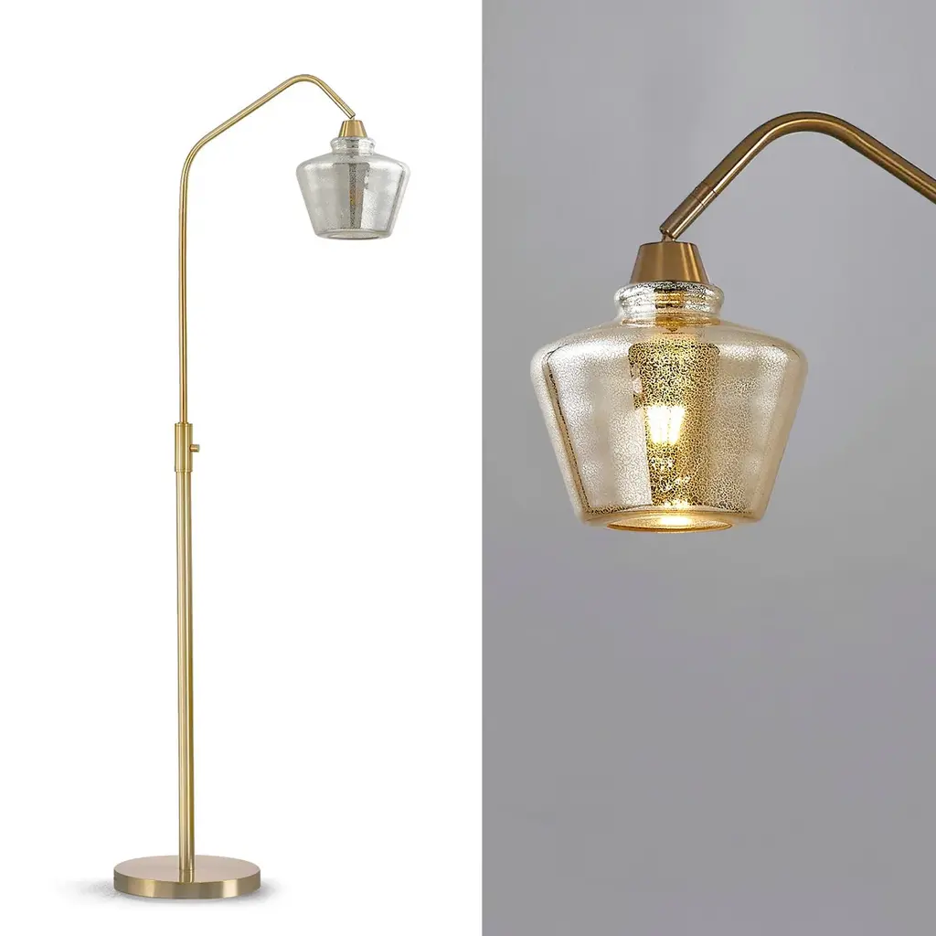 HOMEGLAM design, Midtown series 66" high one light floor lamp features a cone shape design glass shade. light controlled with an easy reach on pole rotary dimmable switch. A 8W warm light LED vintage style edison bulb included. Strong metal built with steady weight lamp base, the Midtown series one light floor lamp brings creative lighting design solution best for your living style. 66" over all height, 25" reach floor lamp Hand blown glass gamp ghade 8.7" ø, 7.5"H Tilt adjustable lamp shade light Strong Metal built with 12" steady weighted lamp base Easy reach on pole rotary LED dimmer switch Includes 1pc 8W 2700k vintage style LED ST64 clear Edison bulb 110V. UL Listed, assembly required