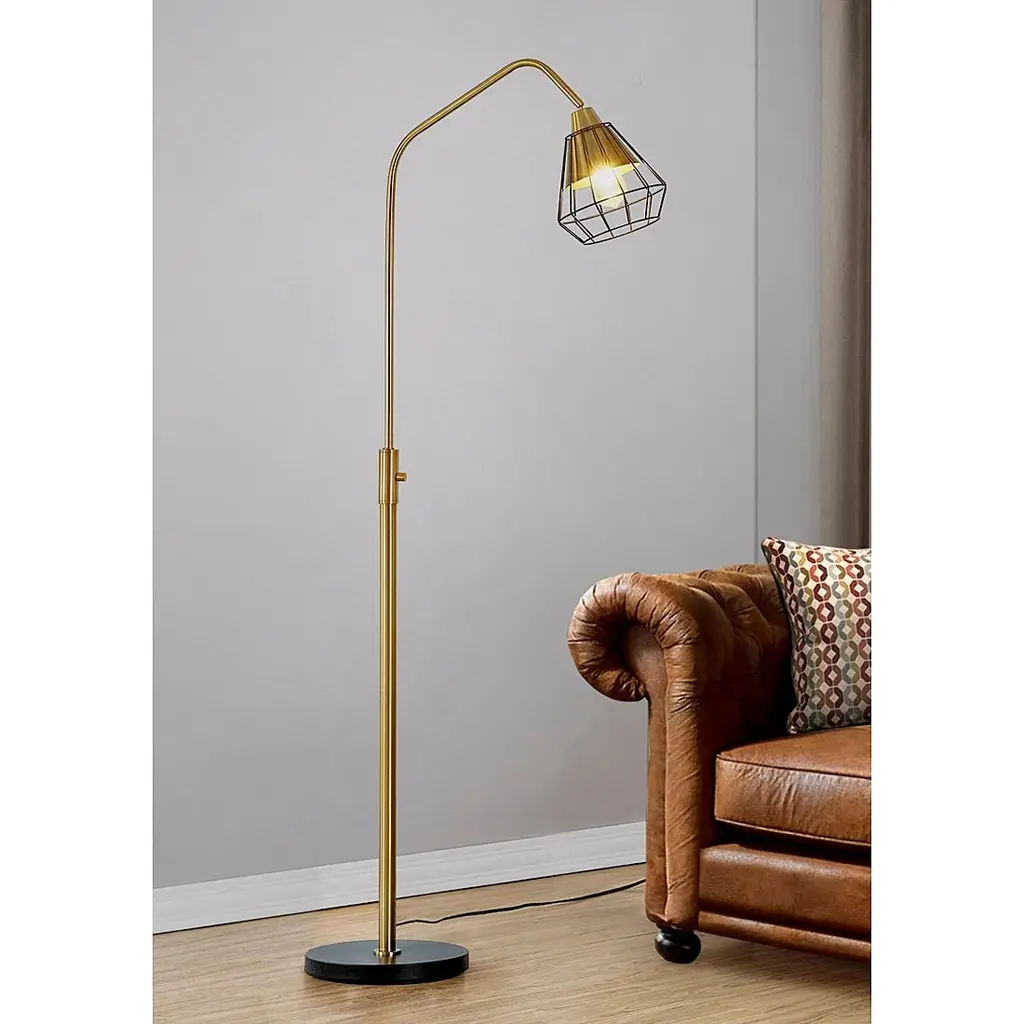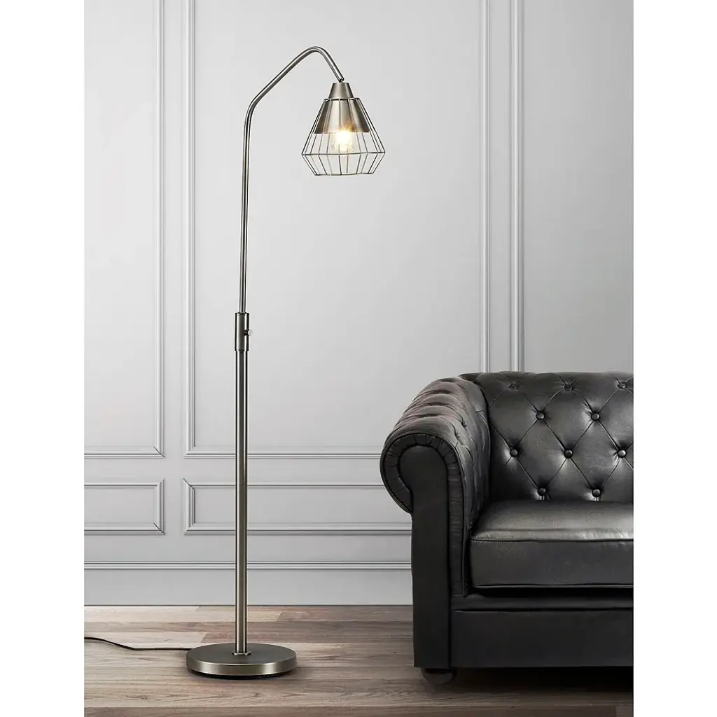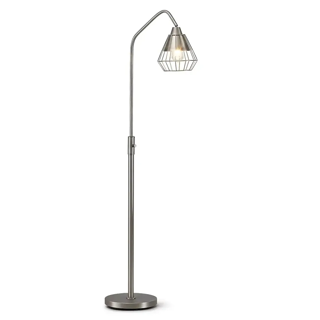 Bring some industrial grace and style into your home with this sleek and artful floor lamp. Cone shaped shades cover the vintage Edison bulb, which can be controlled by a rotary dimmer switch. This creative lighting design offers a lovely solution for some soft, ambient illumination.Features: