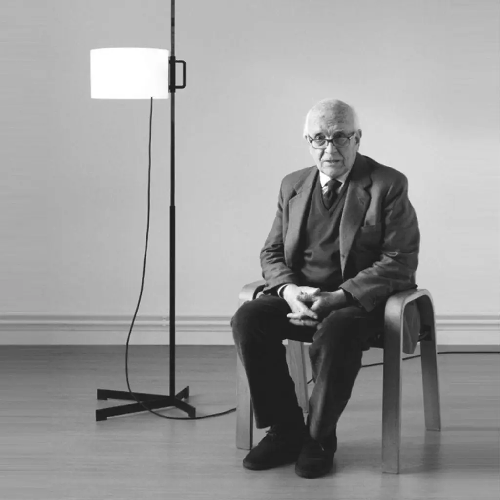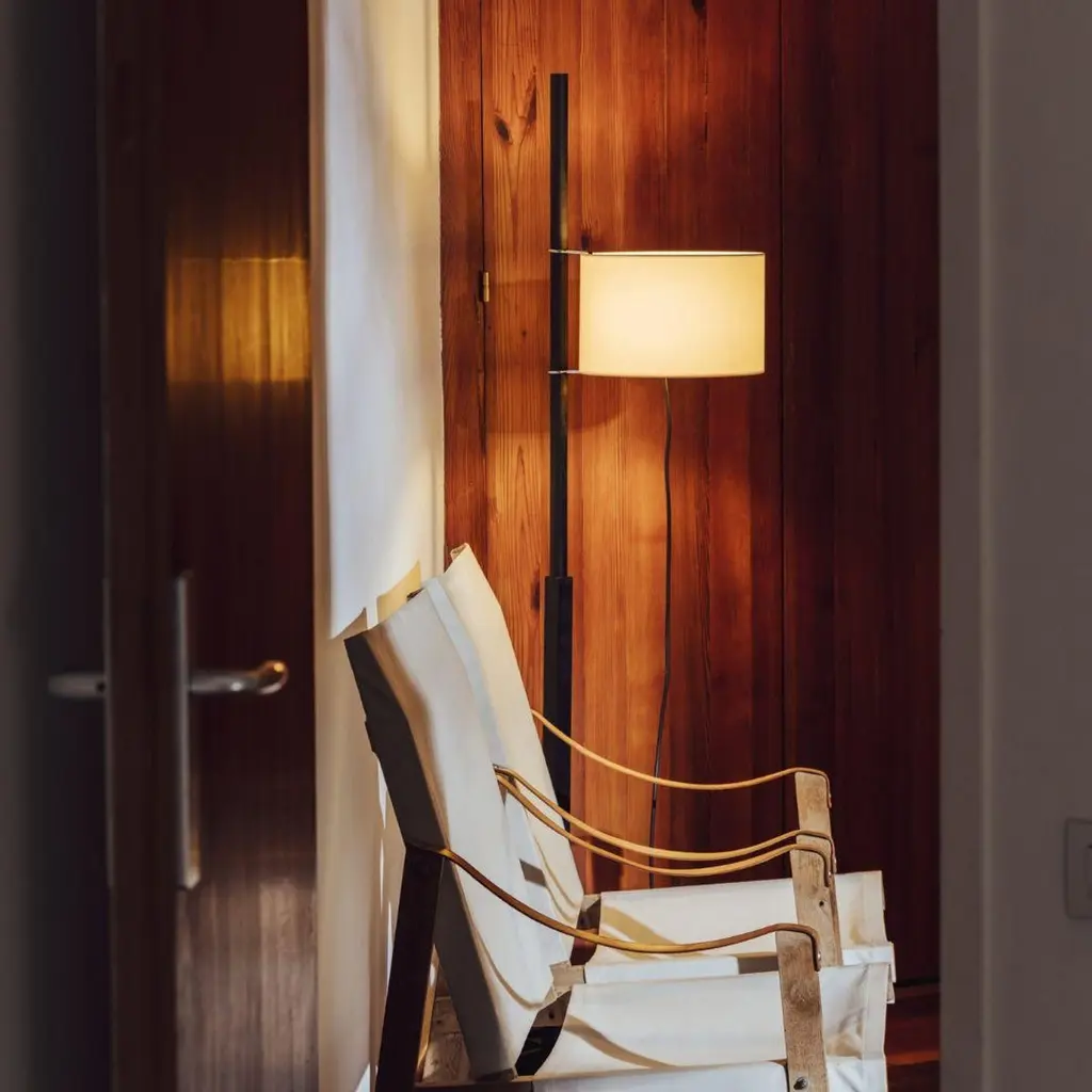 Miguel Milá 'Tmm' Floor Lamp In Black Oak And White Parchment For Santa & Cole