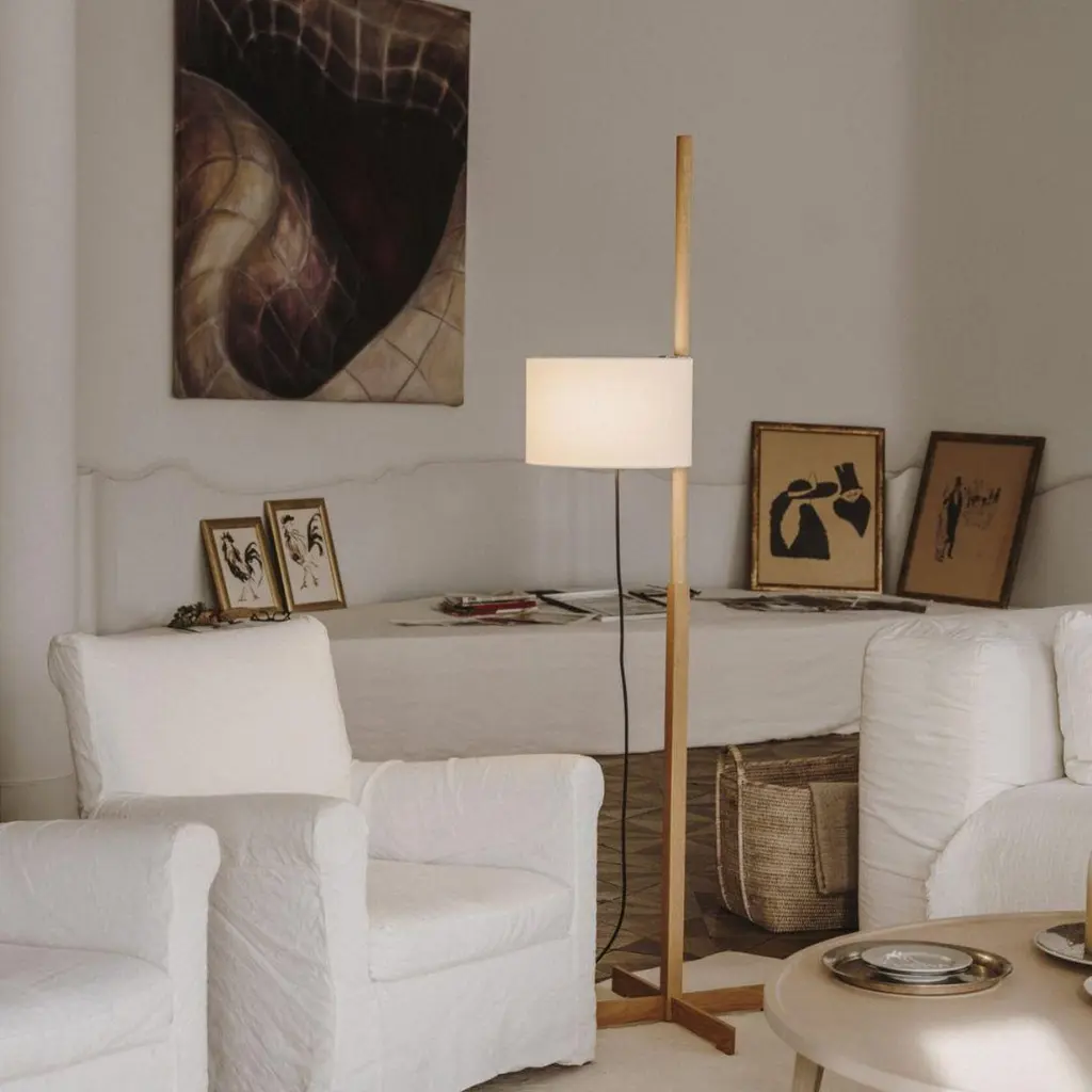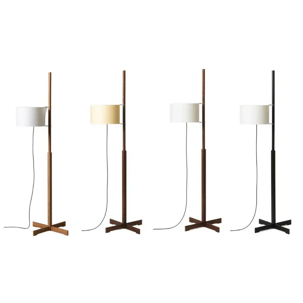 Miguel Milá 'TMM' floor lamp in black oak and white parchment for Santa & ColeFounded in 1985 in Barcelona, Santa & Cole produces iconic pieces by such luminaries as llmari Tapiovaara, Miguel Milá and other European icons with a commitment to faithfully re-edition their legendary designs with uncompromising attention to detail, materials and craftsmanship.The 'TMM' floor lamp is perhaps the most highly acclaimed piece from renowned creator Miguel Milá. An exquisite demonstration of formal serenity and functional efficiency, Milá's 'TMM' brilliantly separated the three basic components of any lamp: the structure, the electrical components and the shade, which is adjustable along the circular wood shaft. Executed in choice of wood with a parchment paper shade, the 'TMM' continues to be meticulously crafted to Santa & Cole's exacting standards using the finest materials available.Price per item. Available in unlimited quantities in choice of oak, beech, walnut, cheery or black oak, with choice of parchment shade in white or beige. Optional upper diffuser in white translucent methacrylate - for LED bulbs only - available for additional cost. This listing is for the 'TMM' floor lamp in black oak with a white parchment shade.In stock lead time 1-2 weeks. Out of stock can add an additional 4-8 weeks or more. Please note that lead times and inventory availability are dependent on choice of wood and are subject to change without notice. For time sensitive orders, please contact us for current lead times prior to purchasing. Kindly note that items must ship from Santa & Cole’s Barcelona warehouse, so 1st Dibs arranged shipping and local pickup are not available. Shipping cost quoted is per item and cannot be combined. Free standard shipping on all lighting orders less than $17,000.Accommodates 1 standard medium base E26 bulb (bulb not included). Recommended 12 watt maximum bulb, lower with incandescent. Powered by 13' black cord, switched on/off by softly pulling on the cable. This lamp is UL listed and IP20 rated.Made to order. All sales are final.