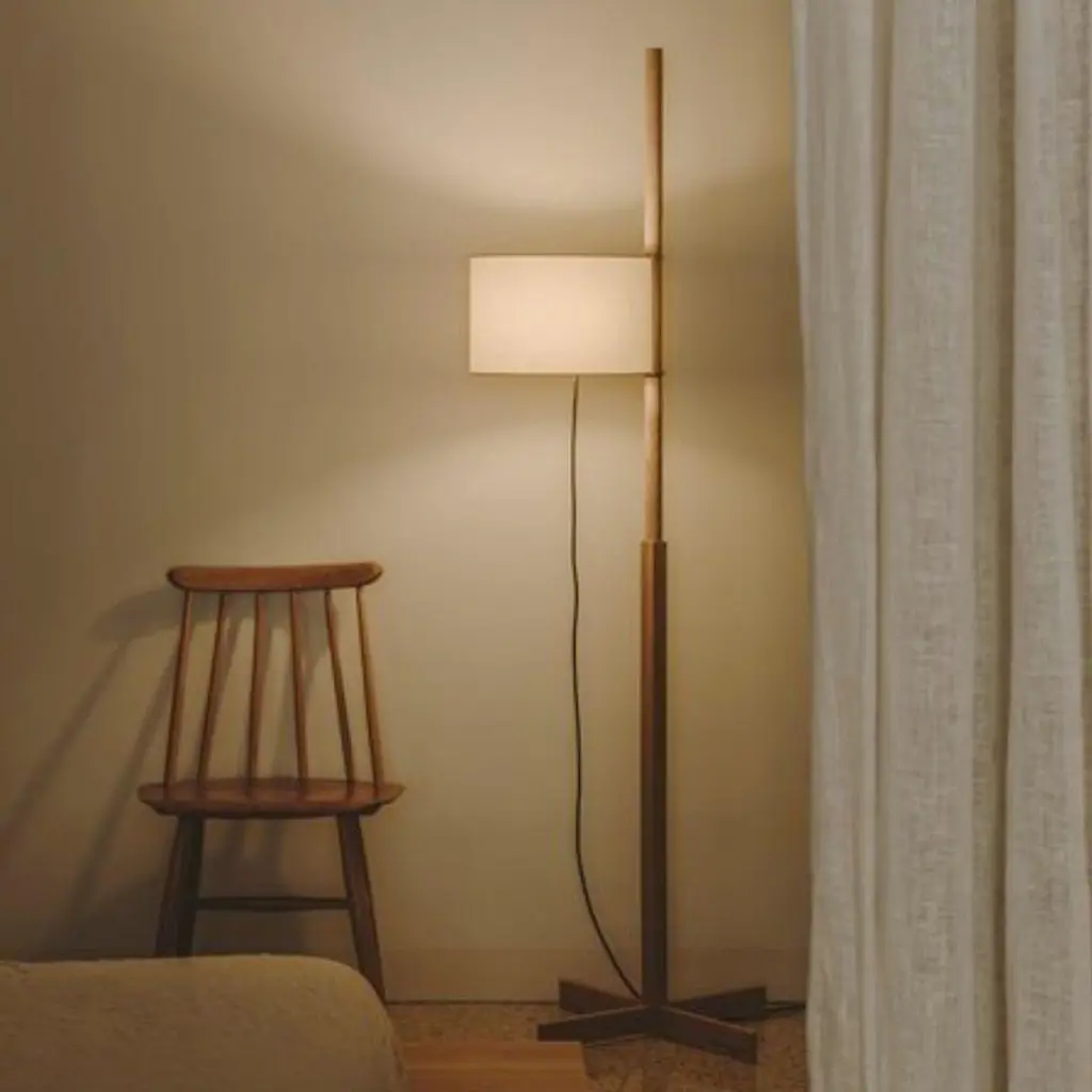 Miguel Milá 'TMM' floor lamp in cherry and white parchment for Santa & ColeFounded in 1985 in Barcelona, Santa & Cole produces iconic pieces by such luminaries as llmari Tapiovaara, Miguel Milá and other European icons with a commitment to faithfully re-edition their legendary designs with uncompromising attention to detail, materials and craftsmanship.The 'TMM' floor lamp is perhaps the most highly acclaimed piece from renowned creator Miguel Milá. An exquisite demonstration of formal serenity and functional efficiency, Milá's 'TMM' brilliantly separated the three basic components of any lamp: the structure, the electrical components and the shade, which is adjustable along the circular wood shaft. Executed in choice of wood with a parchment paper shade, the 'TMM' continues to be meticulously crafted to Santa & Cole's exacting standards using the finest materials available.Price per item. Available in unlimited quantities in choice of oak, beech, walnut, cheery or black oak, with choice of parchment shade in white or beige. Optional upper diffuser in white translucent methacrylate - for LED bulbs only - available for additional cost. This listing is for the 'TMM' floor lamp in cherry with a white parchment shade.In stock lead time 1-2 weeks. Out of stock can add an additional 4-8 weeks or more. Please note that lead times and inventory availability are dependent on choice of wood and are subject to change without notice. For time sensitive orders, please contact us for current lead times prior to purchasing.Kindly note that items must ship from Santa & Cole’s Barcelona warehouse, so 1st Dibs arranged shipping and local pickup are not available. Shipping cost quoted is per item and cannot be combined. Free standard shipping on all lighting orders less than $17,000.Accommodates 1 standard medium base E26 bulb (bulb not included). Recommended 12 watt maximum bulb, lower with incandescent. Powered by 13' black cord, switched on/off by softly pulling on the cable. This lamp is UL listed and IP20 rated.Made to order. All sales are final.