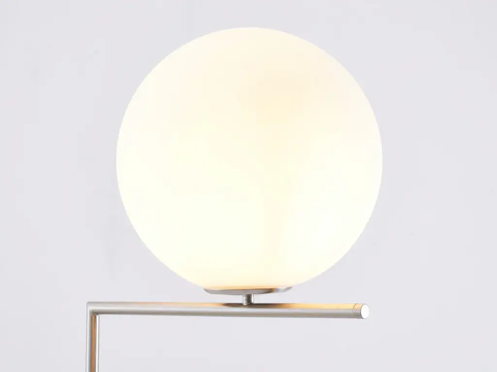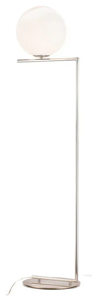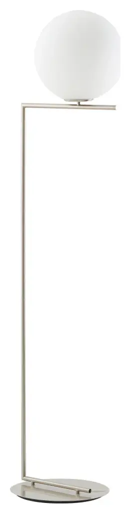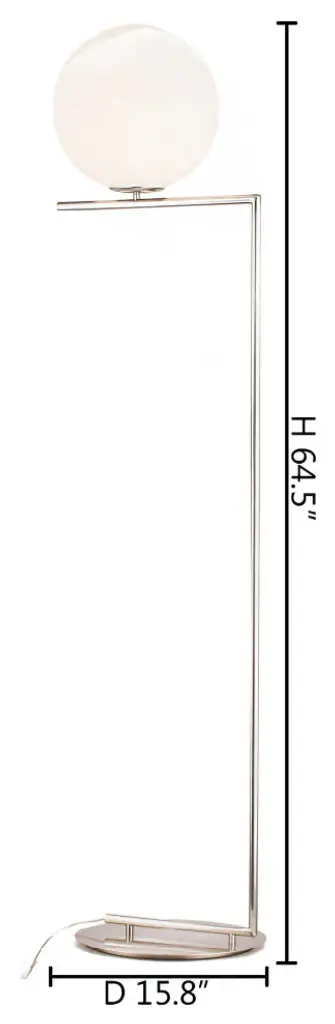 Milk white glass globe floor lamp with a brass iron frameColor: Satin NickelSize: D10.8" H53"Materials: Steel & GlassLighting Specs:Commercial Use: YesUL Certified: YesETL Certification: NoLight bulbs not includedNumber of Bulbs: 1Bulb Type: E12 LEDMax Wattage: 4