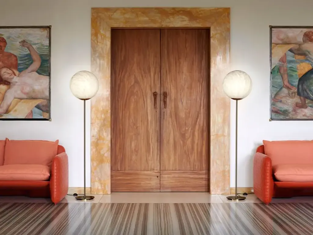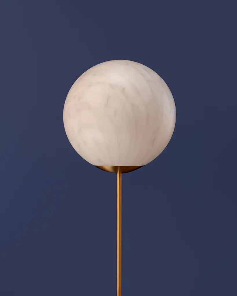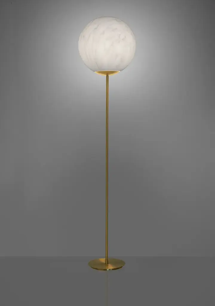 The spherical shape of Mineral Stand lights up every kind of indoor settings with essentiality and elegance. The particular Carrara marble finishing - with red or grey veins - makes the lamp refine and timeless. The brass stem makes both the table and the floor version more precious. Mineral Stand enriches the Mineral collection, with Mineral hanging lamps and Mineral table lamps.Finishes: white marble effect with gray or red veinsBase in satin brass1 x 10W - A65 / E27Fabric cable, burgundy