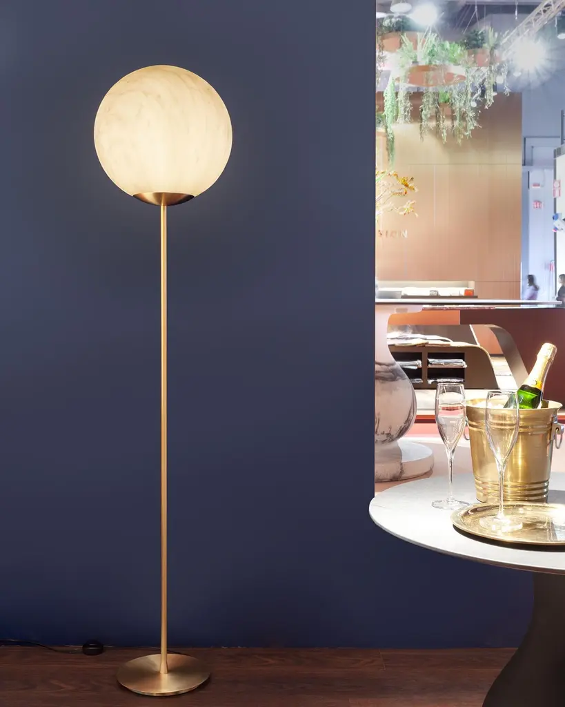 Mineral Red Veinings Stand 175 Floor Lamp by SLIDE StudioDimensions: Ø 40 x H 175 cm.Materials: Polyethylene and satin brass.Available in different finishes and sizes. This product is suitable for indoor and outdoor use. All our lamps can be wired according to each country. If sold to the USA it will be wired for the USA for instance. Please contact us.Our stories happen in places precious to us. SLIDE was born from the desire to produce furniture and light to create the perfect atmosphere that highlights emotions.Design is inspiration, surprise, joy. It's the amazement of seeing something unique for the first time. It's creating spaces to feel good and live surrounded by beauty. It means giving a personal imprint to indoor and outdoor spaces. It means choosing your ideal element that is the perfect setting for emotions and experiences, which become indelible memories. The founder Giò Colonna Romano knows this well, combining his fervent imagination with thirty years of know-how in the processing of plastic resins, giving birth to SLIDE in 2002. The first note of amazement is the luminous furniture, which immediately became a must have in the world of events. Since 2015, his son Marco Colonna Romano has taken over the reins of the company, with the same desire to grow and innovate as his father. Thanks to a new panache and the team of young people it surrounds itself with, SLIDE becomes a beloved company for outdoor furniture: new shapes, materials and tactile textures have won the hearts and ideas of architects and interior designers around the world. SLIDE has thus created complete collections and furnishings, with new shapes, whose lines arise from collaboration with internationally renowned designers of the caliber of Alessandro Mendini, Paola Navone, Stefano Giovannoni, Fabio Novembre, Marcel Wanders, Karim Rashid, Marc Sadler, Francesco Favaretto and Marcantonio.New materials were chosen and inserted, initially soft and rigid polyurethane, and then comfortable cushions, waterproof fabrics, tactile textures ideal for completing the polyethylene furnishings with taste and class. But SLIDE does not forget its first essence, lighting: in recent years it has developed a line of much more technical lamps for large areas, essential in shape but with great visual impact. For the first time, Slide has managed to give an artisanal twist to an industrial process: to meet the increasingly high demands of living, the production creates non-replicable shades, in which every small imperfection enhances the industrial process and makes each piece unique . Because Slide's strength has always been the careful reading of the market, the creation of something that didn't exist and which then became necessary: here Slide continues its production in Buccinasco, on the outskirts of Milan, but its name and its products reach more than 130 countries around the world.