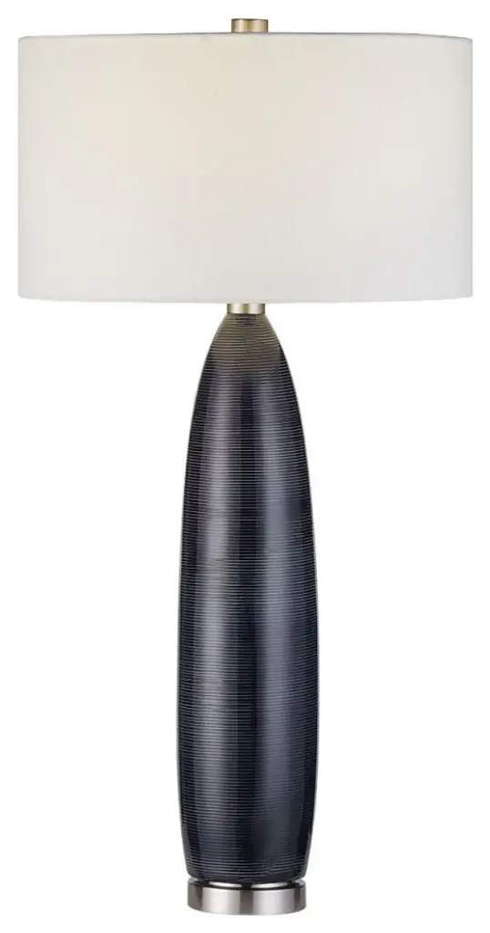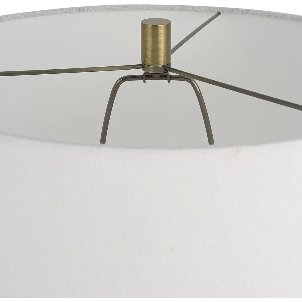 The Miraz Lamp Oozes Sophistication With Its Channeled Cast Iron Base, Brushed Brass Accents, And A Considerable White Marble Foot. The Tapered Hardback Shade Is Covered In A White Cotton Fabric.