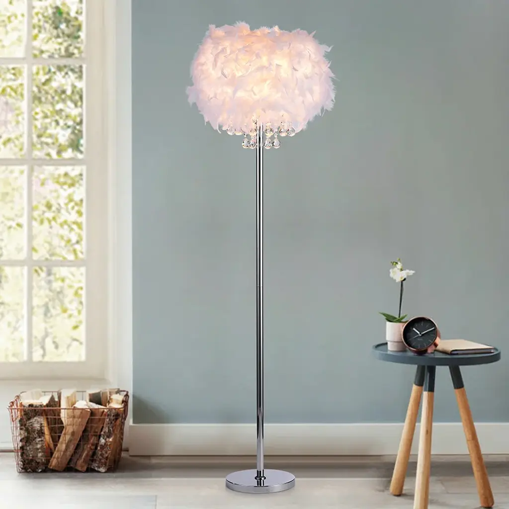 Mirjam Chrome Crystal 1 Light Fancy Shade Floor Lamp - Antique White/platinum
