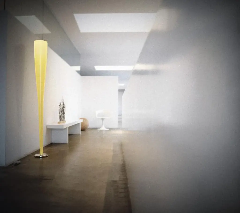 The collaboration between Foscarini and Marc Sadler began with Mite; a floor lamp so innovative that it was awarded the Compasso d’Oro (Golden Compass) in 2001. The company and the designer even developed a special patent for Mite: a mix of fiberglass and carbon thread or Kevlar® that acts as both decoration and a supporting structure at the same time. Technology previously used to produce fishing rods, oars and golf clubs, was introduced to the lighting world for the first time. The circular shape at the bottom of the lamp extends upwards to where the light source is housed. Mite guarantees excellent lighting through an illusion of inner parabolas, projecting an intense and warm band of light towards the ceiling. The inner lighting enhances the decoration and the lamp’s slender shape. Mite furnishes any room with an uncluttered presence and an elegant personality. Features