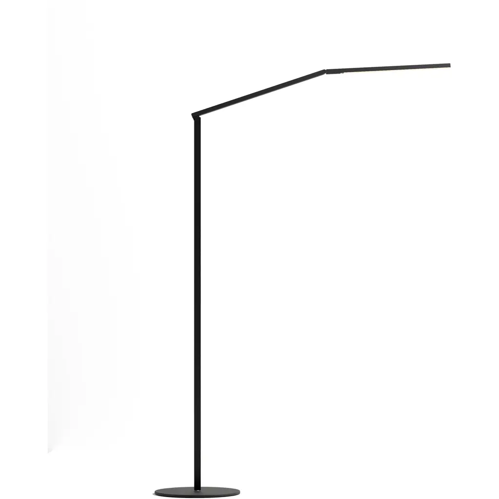 Bring a sharp glow to your home with the Miter LED Floor Lamp by Kuzco Lighting. As minimalist as can be, this floor lamp features sharp, clean lines on a stem-like body that extends from a flat circular base. Near the top of the fixture, the body sharply angles and reveals a linear, energy-efficient LED light source capped by an opal diffuser. The design of this fixture ensures a warm, crisp light illuminates your surroundings as attention is drawn away from the piece itself.