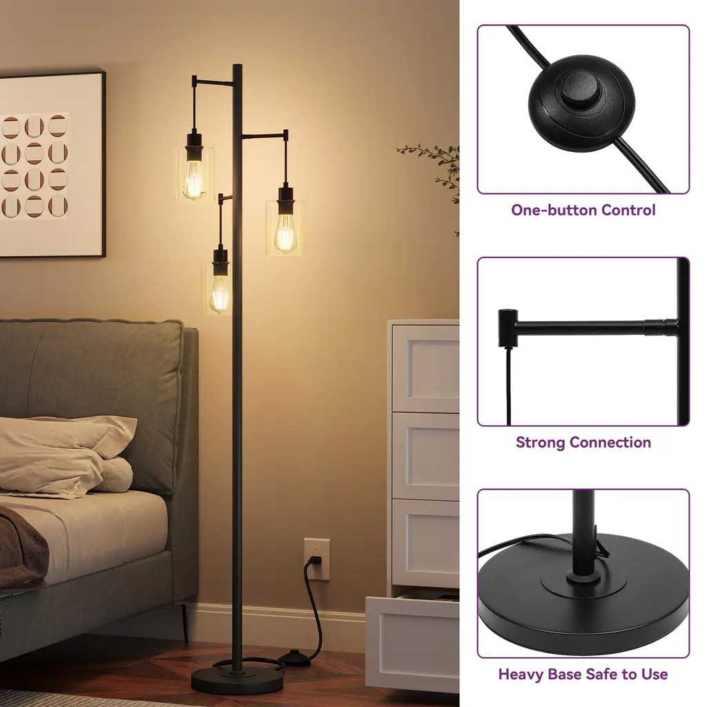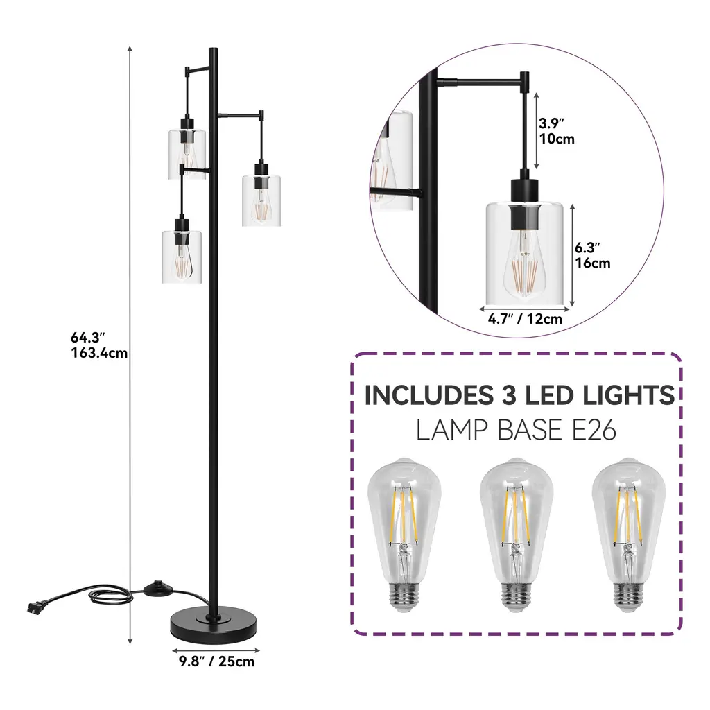 Moasis Tree Floor Lamp With 3 Bulbs - Matte Black