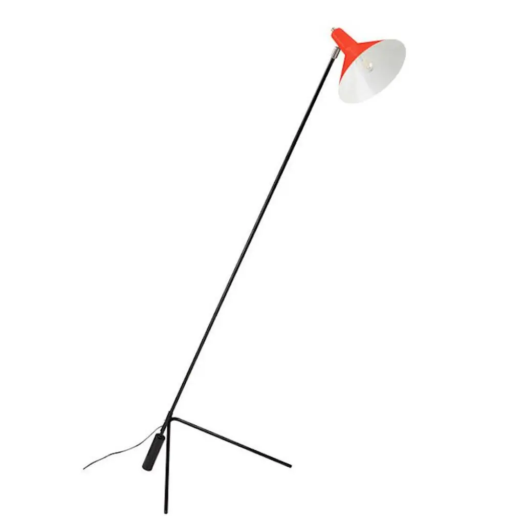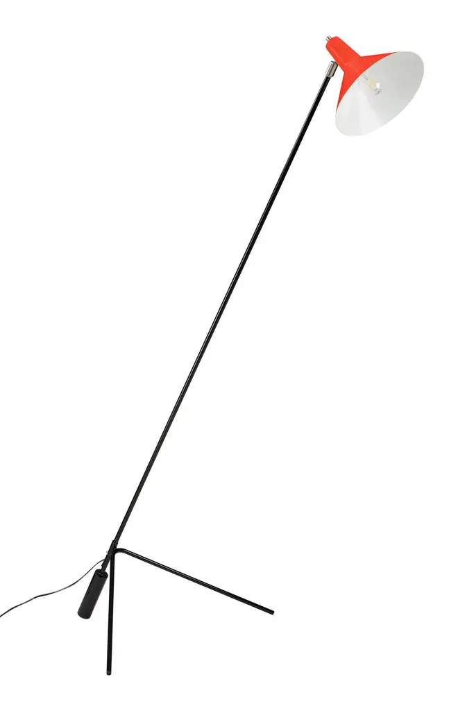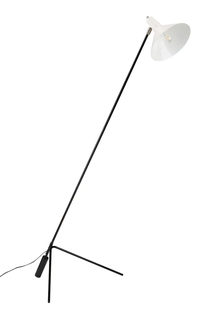 Model No. 1502 Grasshopper floor lamp by J.J.M. Hoogervorst. Current production designed and manufactured in the Netherlands for Anvia. Enameled metal. Wired for U.S. standards. Floor lamp No. 1502 is based on a grasshopper style of lamp that was produced on a limited scale in 1955. The foot of the floor lamp is quite special. The angle can be changed by moving the foot up or down. In addition the lampshade is adjustable into various positions. Available in white, black, grey, red. The manufacturer recommends one E27 LED bulb. Bulbs not included.