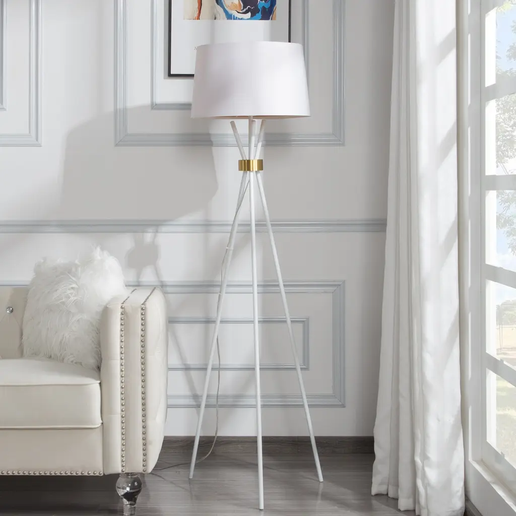 Modern 63.2" Tripod Floor Lamp With Linen Shade For Living Room - White