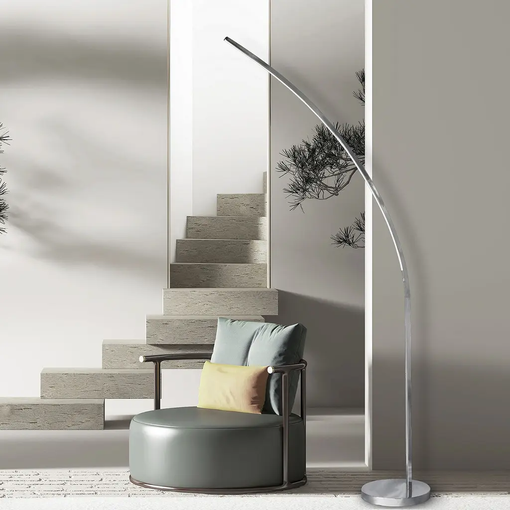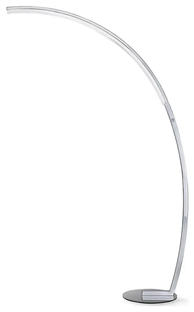 Clean lines and appealing curves draw attention to the Gentle Bend family of lighting. The design features an integrated LED light. LED fixtures produce light at up to 90 percent better efficiency than incandescent lighting. The rod extends upwards from a metal base, incorporating a slight bend that begins halfway up the construction. The LED light, set inside the curve, can be placed to provide welcome illumination over a specific area. Form and function blend together in a seamless design for your modern living room, bedroom or office space.