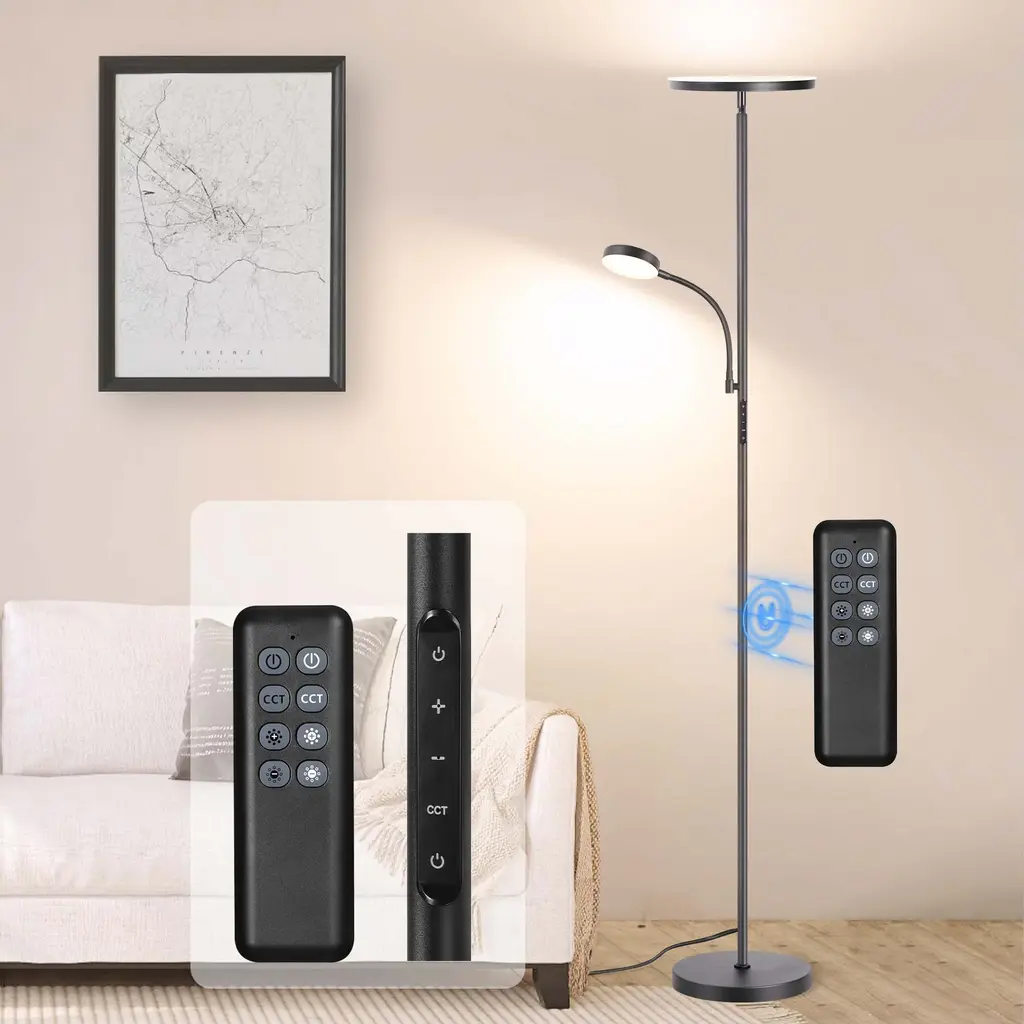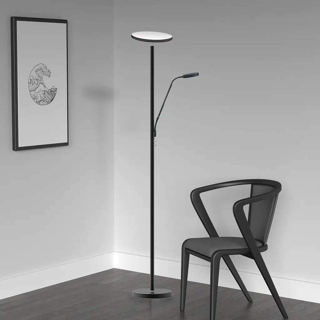 Adding welcome light in a smooth contemporary aesthetic, the LED Floor Lamp collection features a distinctive profile. The design features an integrated LED light. LED fixtures produce light at up to 90 percent better efficiency than incandescent lighting. The metal base and rod curves back slightly for the simple configuration, splitting into two arms for the mother/son light. The light housing directs illumination down from above, making it ideal for reading, studying or work. Available in both a simple and mother/son configuration, it's a stylish and practical solution to any dark corners of your home or office.